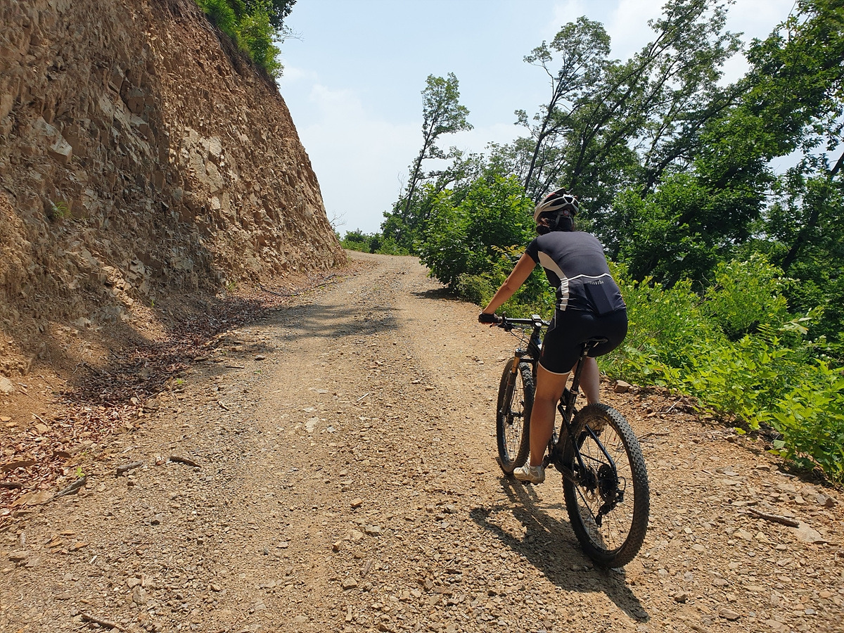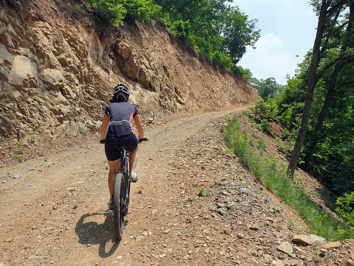 새로 난 임도에 진입해서 뒤를 보니 다행히 MTB 동호회는 원래 코스로 가는 것 같다. 새로 난 임도라 그런지 나무가 치워져 있어 그늘이 없는 구간이 계속된다.