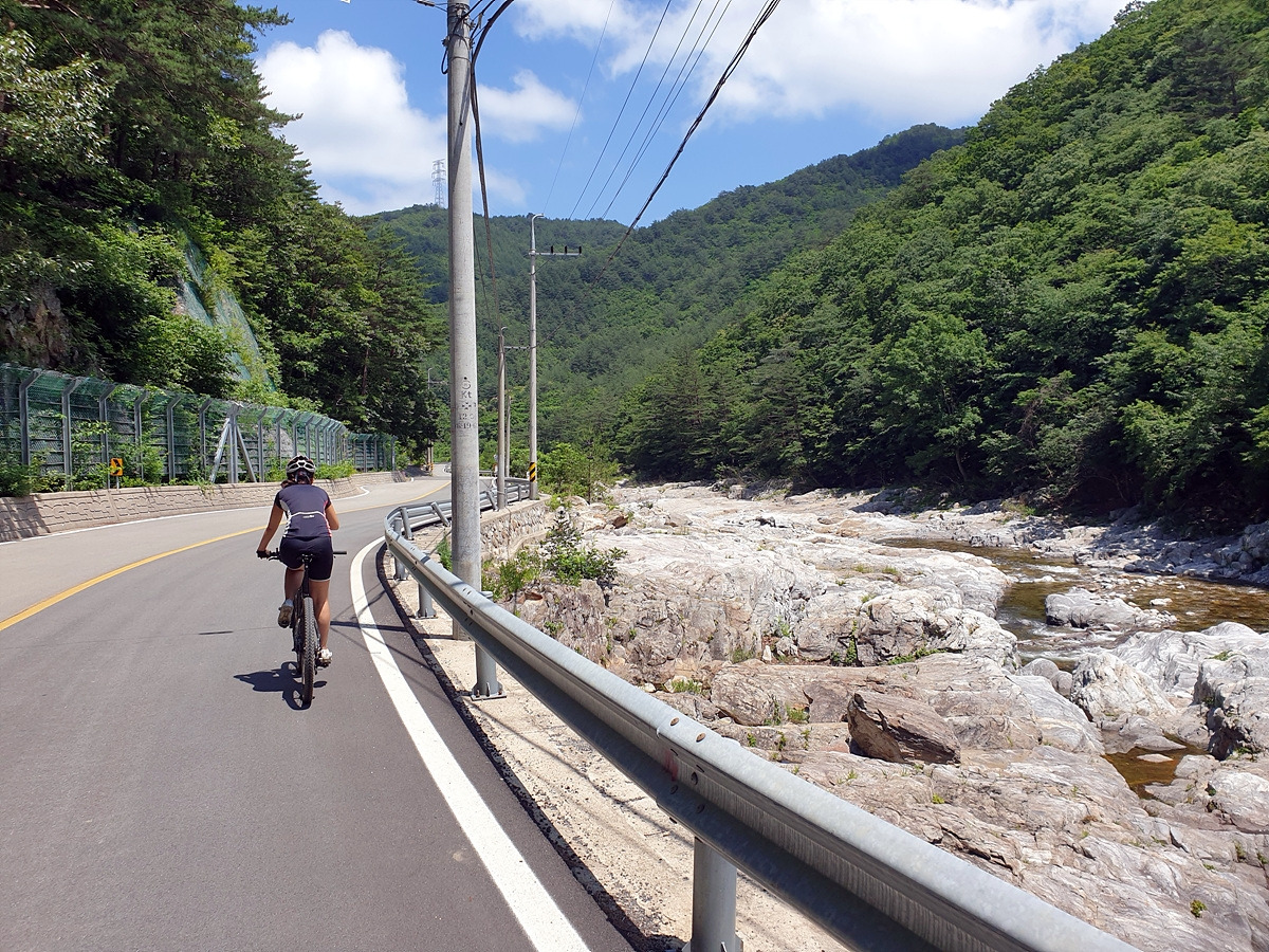 점점 더워지는 날씨 속에 오늘은 산악자전거를 가볍게 타기로 했다. 서울 양양고속도로의 끝인 양양에서 갈 수 있는 양양 현북면의 법수치 계곡으로 간다. 초반에 59번 국도의 오르막길과 법수치 임도를 달린 후에 후반부에는 법수치 계곡을 따라 시원하게 달리는 코스다. 근처에 임도가 여럿 있어서 길게도 달릴 수 있지만 오늘은 가볍게 간다.