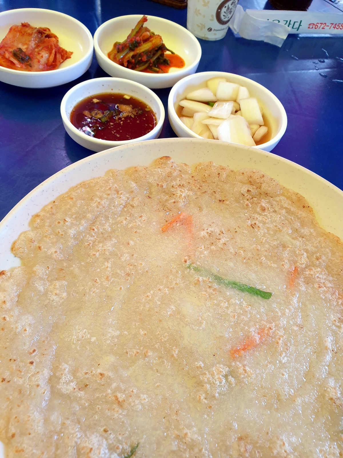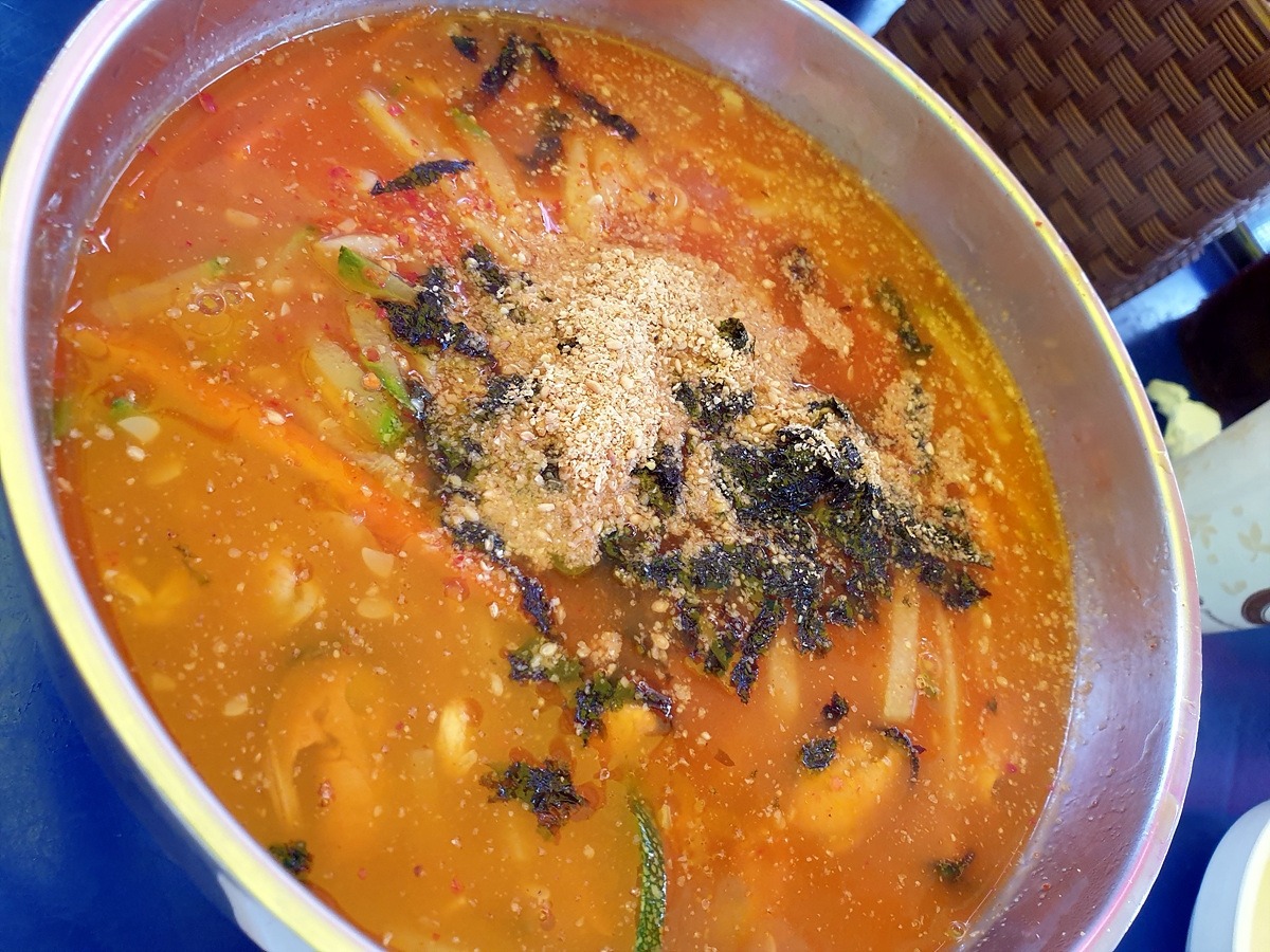 다른 골목에서 장칼국수와 감자전도 하나 먹는다. 이 정도면 아침식사는 든든하게 한 것 같다.