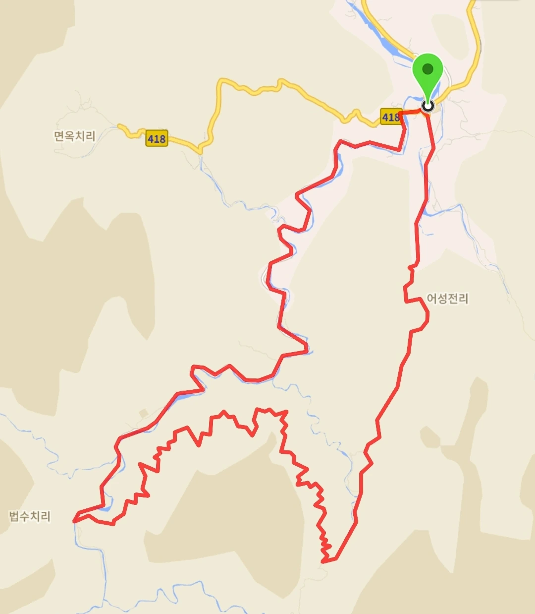 계곡물을 따라 쭉 내려가다 보면 418번 도로와 만나게 된다. 이제 거의 다 온 셈이다.