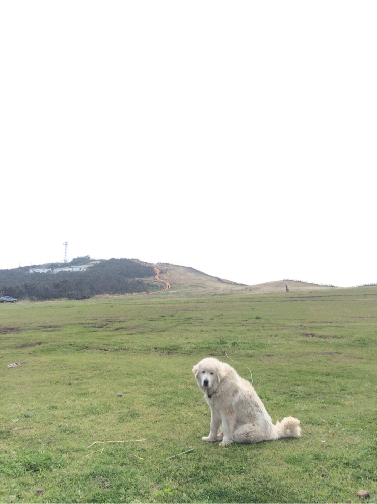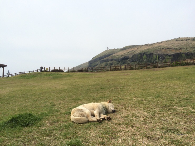 쭉 한 바퀴 돌아서 우도봉 등대 근처까지 왔습니다. 관광객들은 신경도 안 쓰고 잘 자는 동네 개가 한 마리입니다.