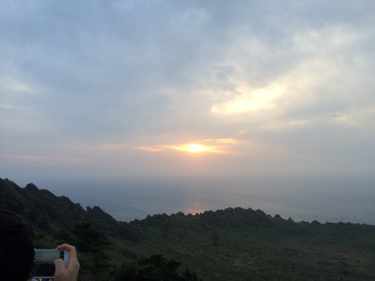 꼭대기에 올라와서 조금 기다리니 짙게 낀 구름 사이로 해가 얼굴을 빼꼼 내밉니다.