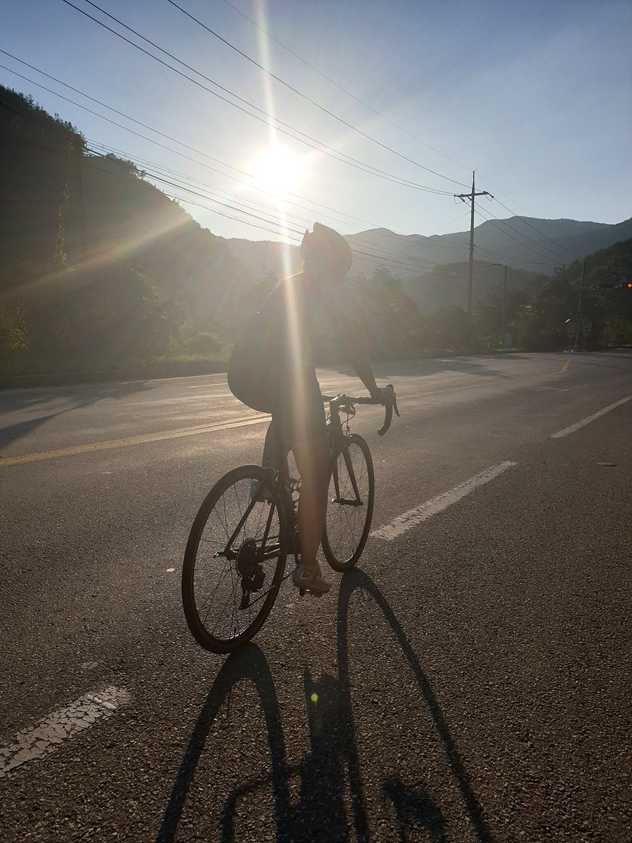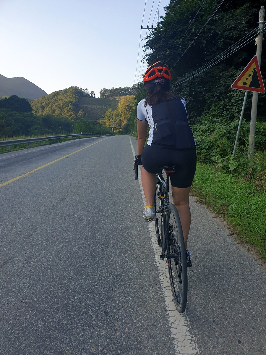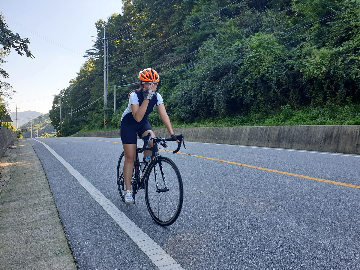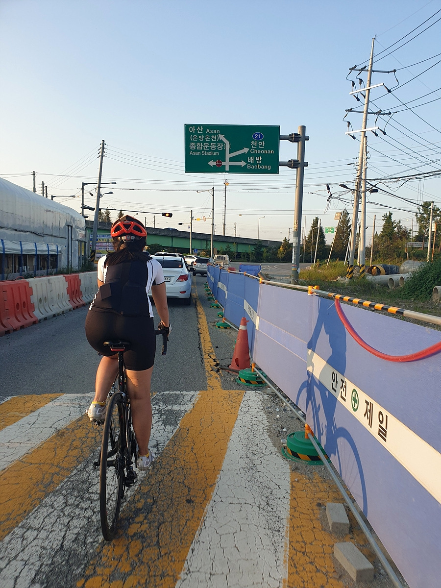 아무래도 광덕산을 넘어가야 하다 보니 언덕길이 조금씩 나타난다. 큰 언덕은 아닌 데다가 차량 통행도 얼마 없으니 천천히 올라간다.