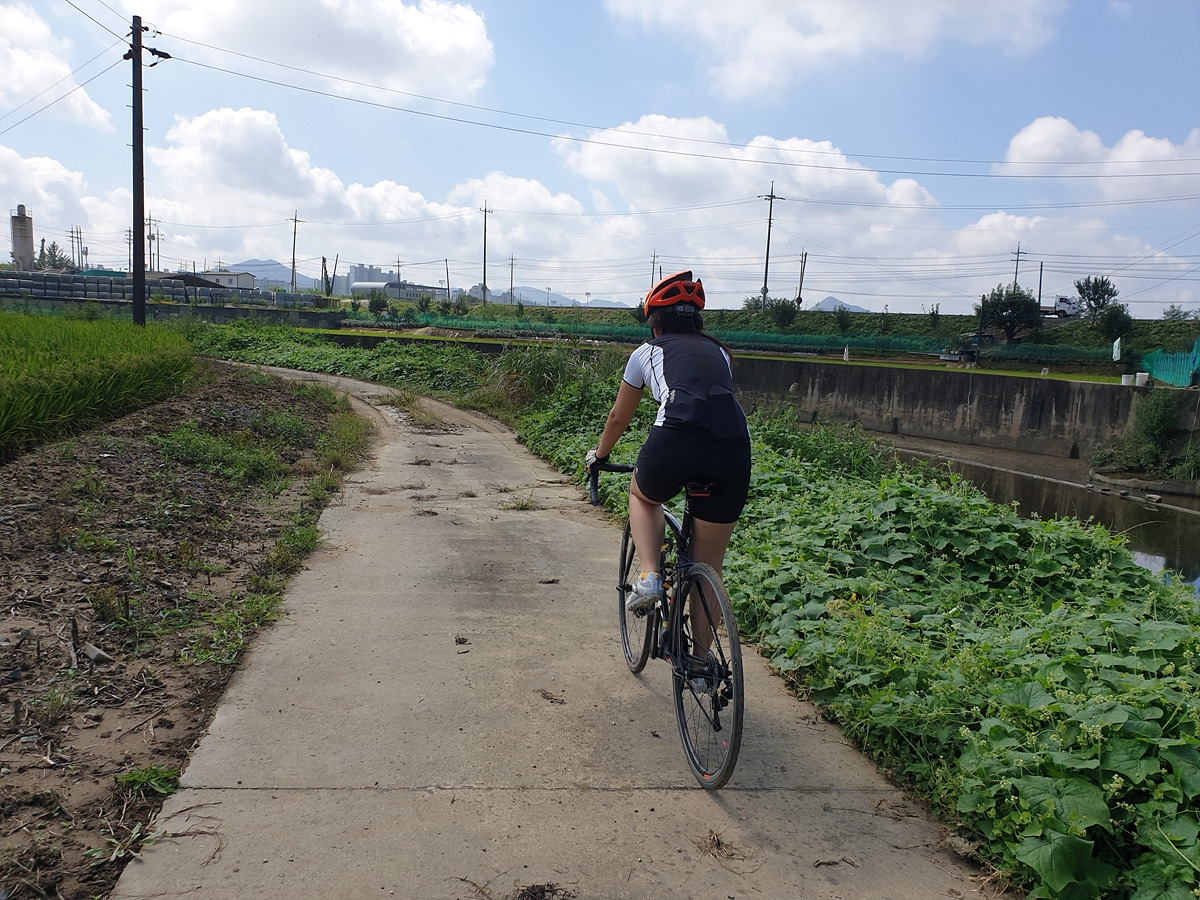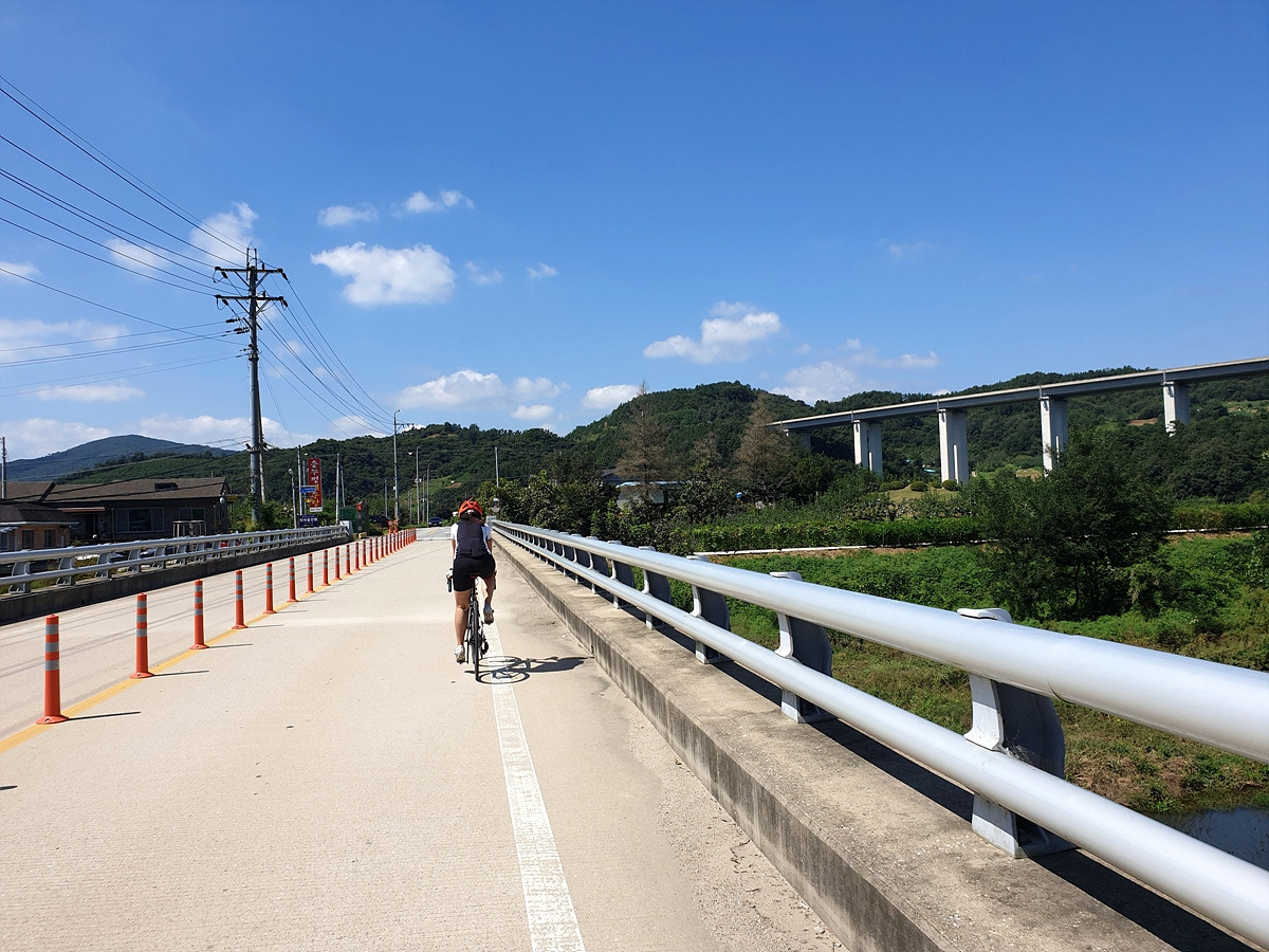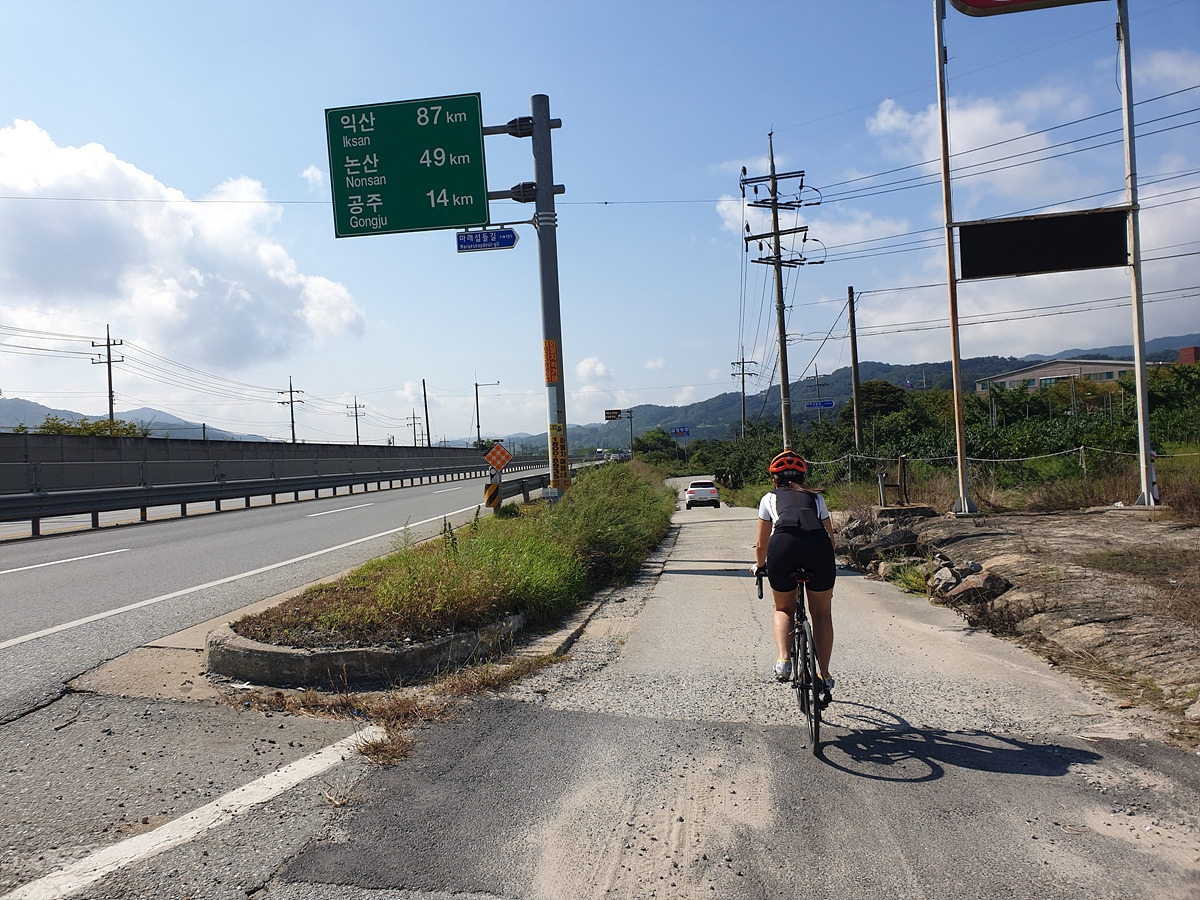 고속도로 옆으로 23번 국도가 있는데 이 역시 중앙분리대가 있고 차들이 쌩쌩 달리는 큰길이다. 가능하면 이런 차 많은 길로 자전거 타는 건 피하고 싶다. 도로 바로 옆으로 나란히 이어지는 샛길이 있으니 차들과 함께 달리지 않아도 된다.