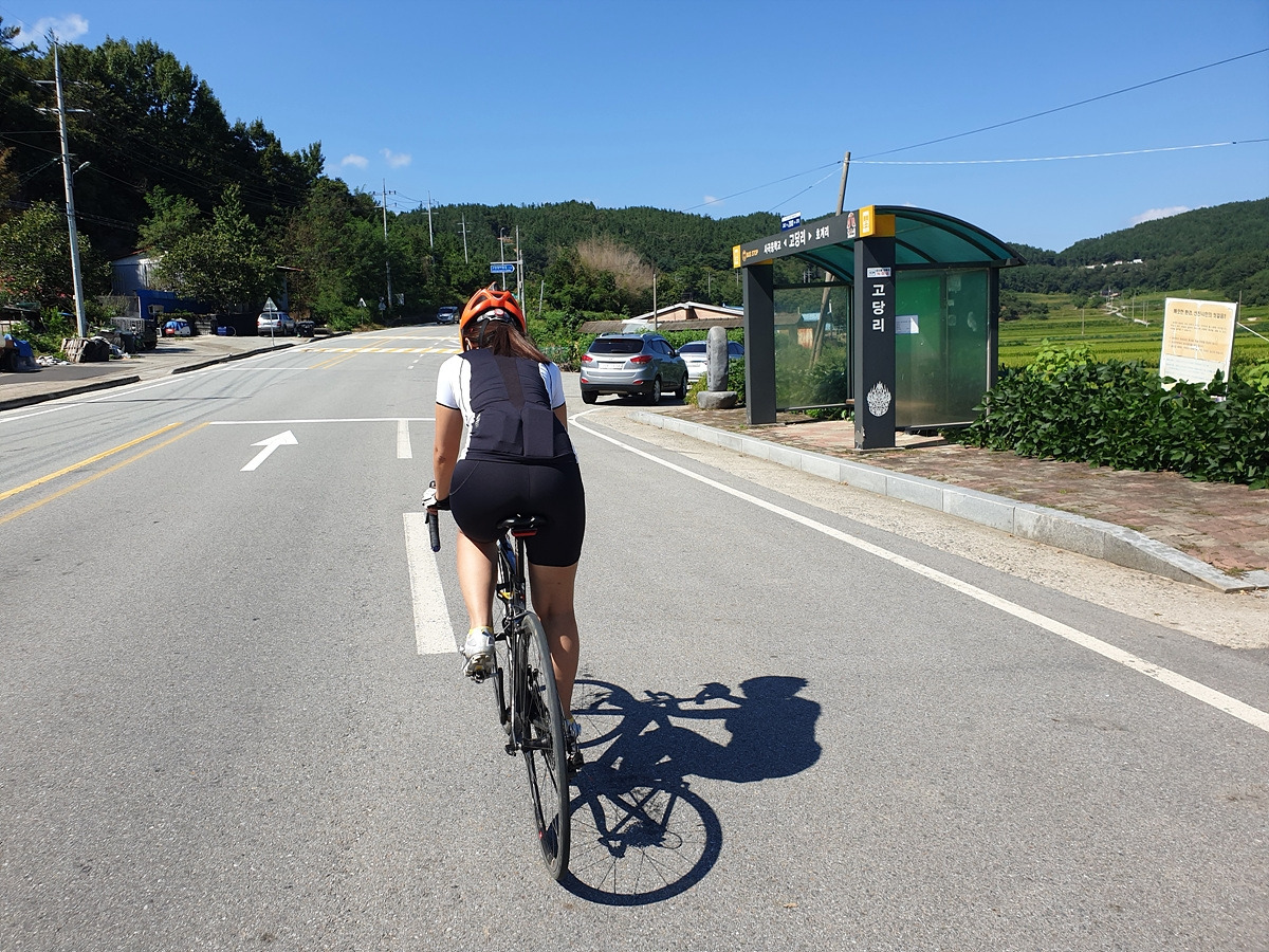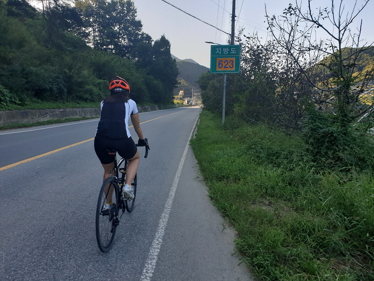 좀 힘들게 돌아 나와서 포장길을 다시 달린다.