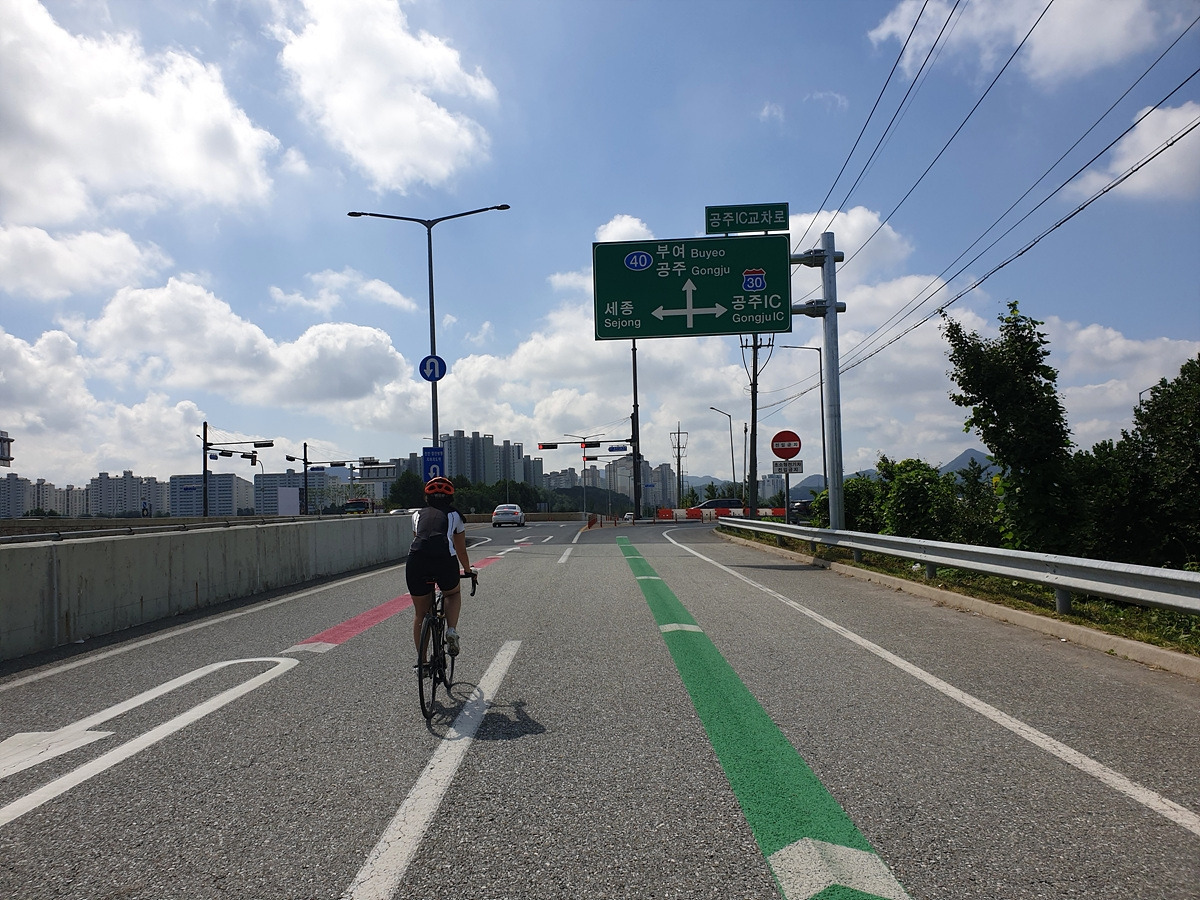 공주 버스터미널 앞을 지나는데 금강길을 달리러 온 자전거인들이 여럿 보인다. 타지에서 오는 사람들은 대부분 금강 자전거길을 달리러 왔을 것이다. 사실 이 근처는 차량 통행이 적어 금강길 이상으로 좋은 공도 코스가 많지만 외지인들은 잘 모른다.