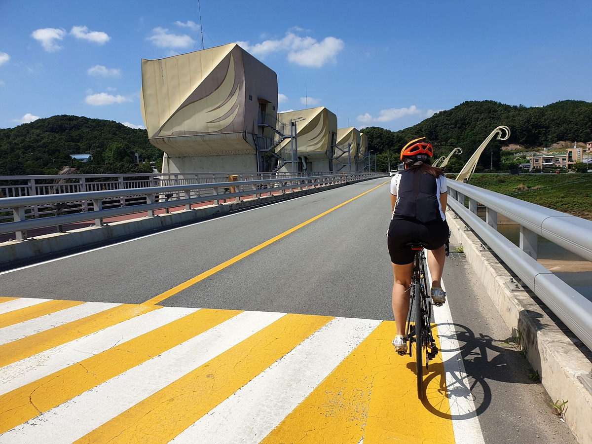 오랜만의 공주보다. 여기서 공주보 건너 금강 우안 구간은 길이 끊기기도 하고 공주터미널 방향으로는 연미산 고개가 있어서 동네 사람들이나 길 모르는 사람만 다니는데 우리도 공주보를 건너가야 한다. 이제 아산 방향으로 달린다.