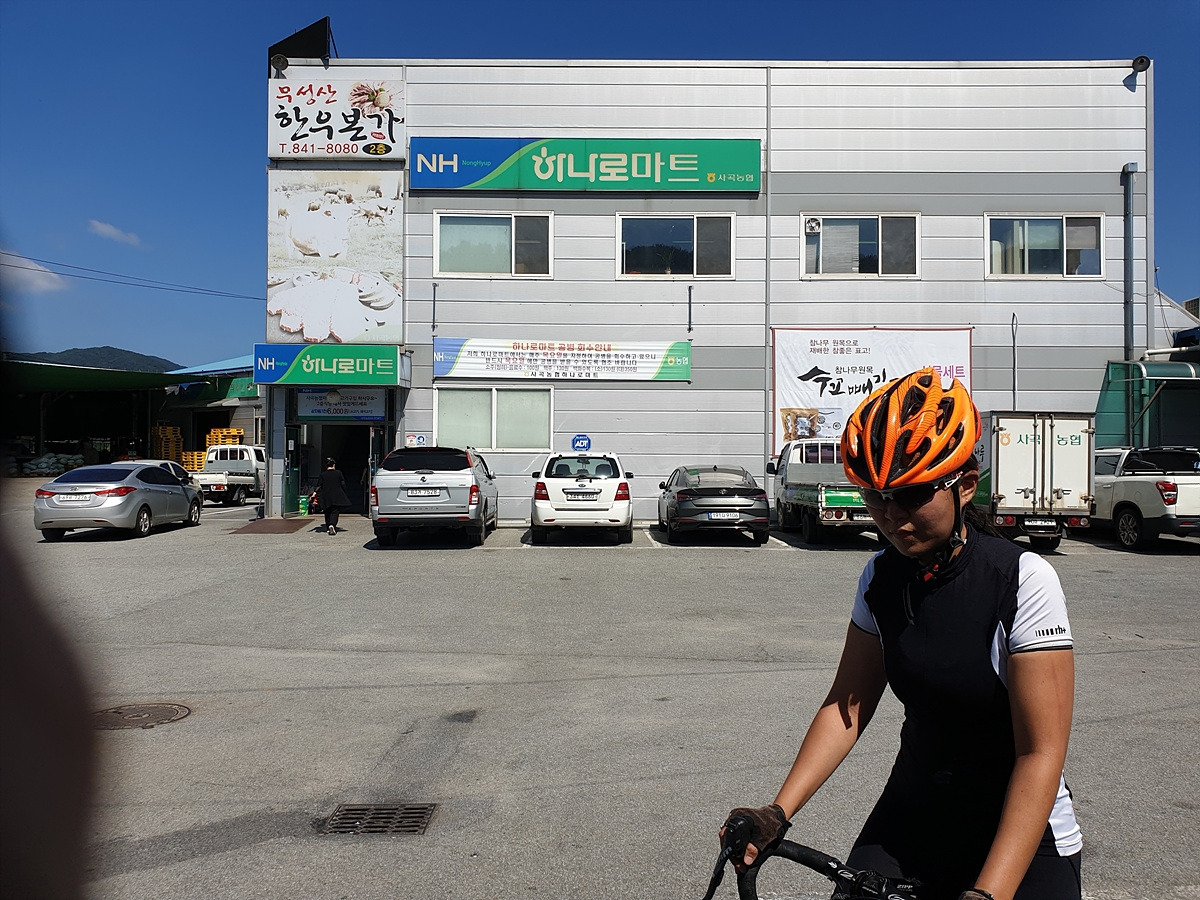 날이 살짝 더우니 사곡 하나로마트에서 간식을 먹으며 잠시 쉰다. 화장실까지 쓸 수 있는 하나로마트는 최고다.
