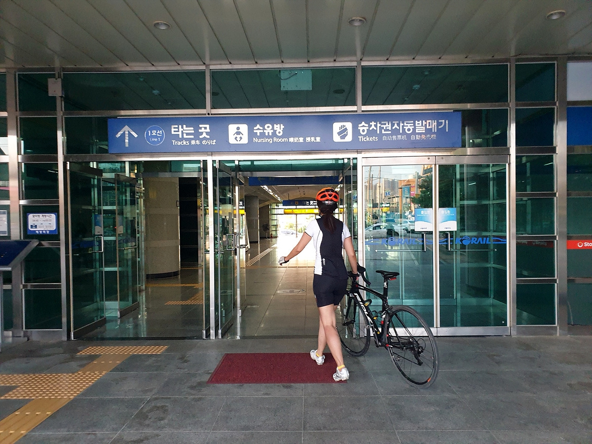 해가 저물기 전에 자전거 타기를 딱 마쳤다. 배차 간격이 큰 1호선 끄트마리인데도 마침 전철이 곧 온다고 한다.