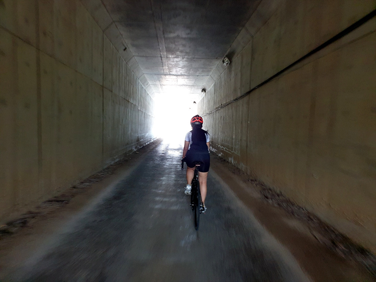 반대편의 천변길로 가려면 굴다리로 고속도로를 건너야 한다.