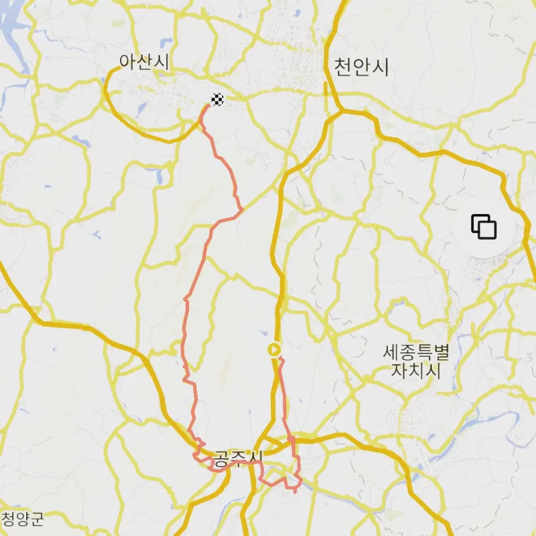 그런데 이 짬뽕집이 공주에 있다. 아산에서 공주로 한 바퀴 돌아오는 코스를 예전부터 생각해두긴 했는데 어떤 식으로 가든 100km가 넘는다. 한 동안 자전거를 안 탔으니 주행 거리를 좀 줄이고 싶다. 그렇다고 공주에서 출발해서 바로 아산으로 가는 것은 또 너무 짧은 듯하다. 마침 중간 즈음에 고속버스 환승이 가능한 정안알밤 휴게소가 있으니 여기서 출발하기로 한다. 그러면 전체 거리가 80km 정도니 적당하다.