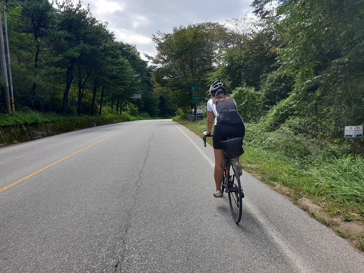 여기서부터 넛재 오르막길이 시작된다. 처음 왔을 때, 아무리 달려도 끝이 안나는 길고 긴 오르막길에 질릴 뻔했지만 지금은 익숙한 길이다.