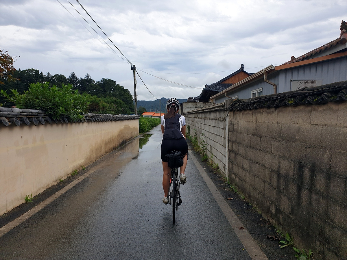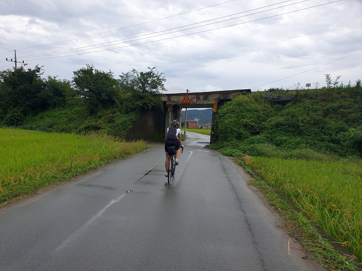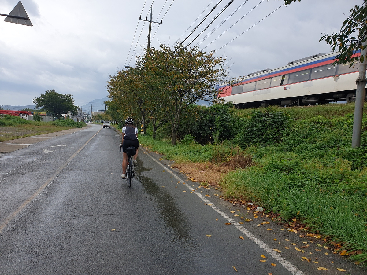길의 끝은 또 4번 국도와 만나는데 왼쪽으로 마을 들어가는 길이 또 있다. 얼른 들어가서 철길까지 지나가면 차들 안 다니는 길이 계속 이어진다.