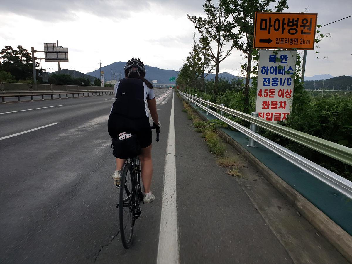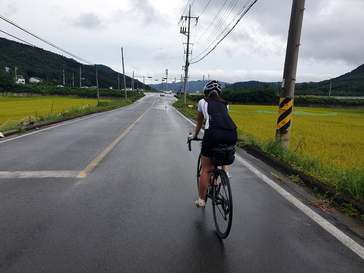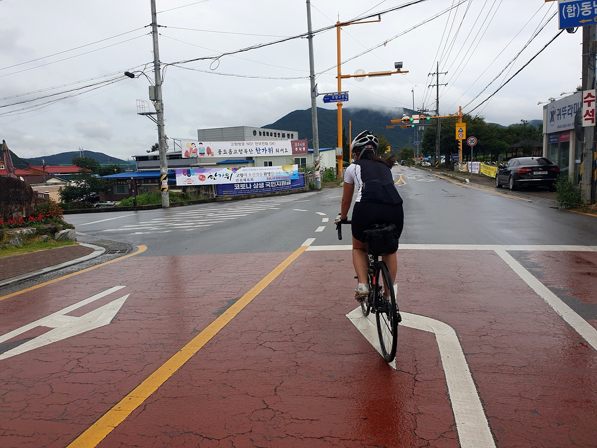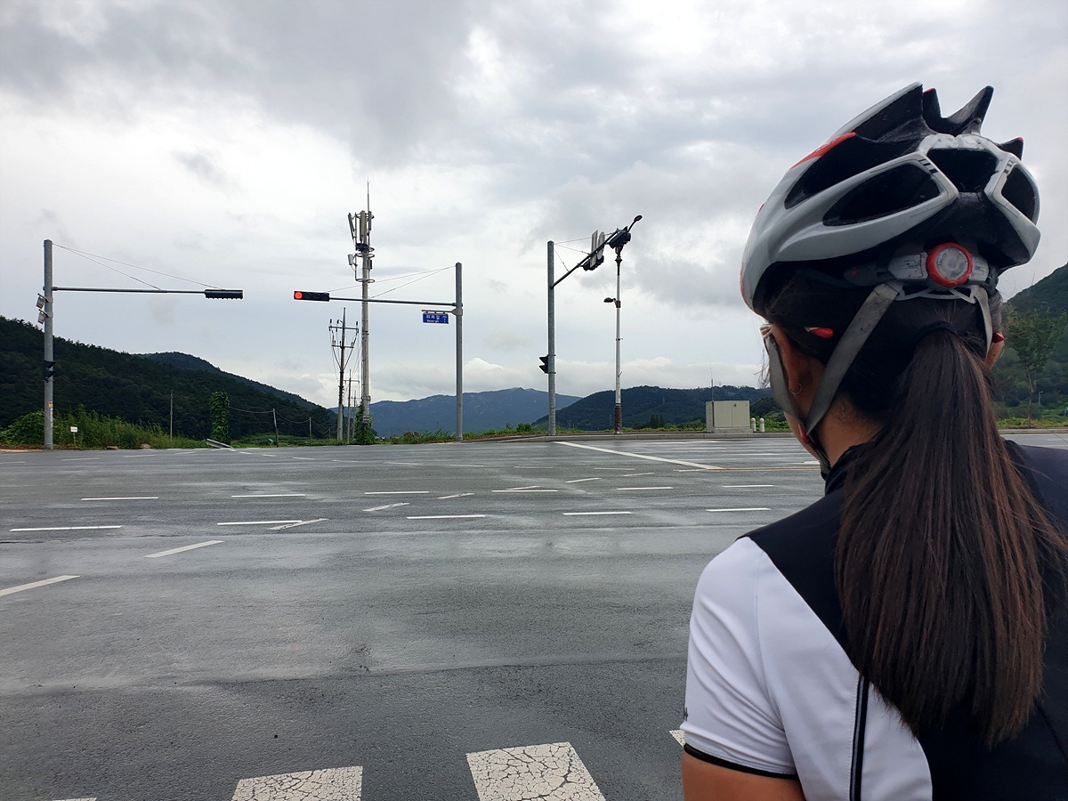 비를 그대로 맞다가 신발이 다 젖으면 끝장이다. 근처 북안면 버스 정류장으로 대피한다. 오늘은 달리는 거리도 길지 않으니 느긋하게 비가 지나가는 걸 기다리기로 한다.