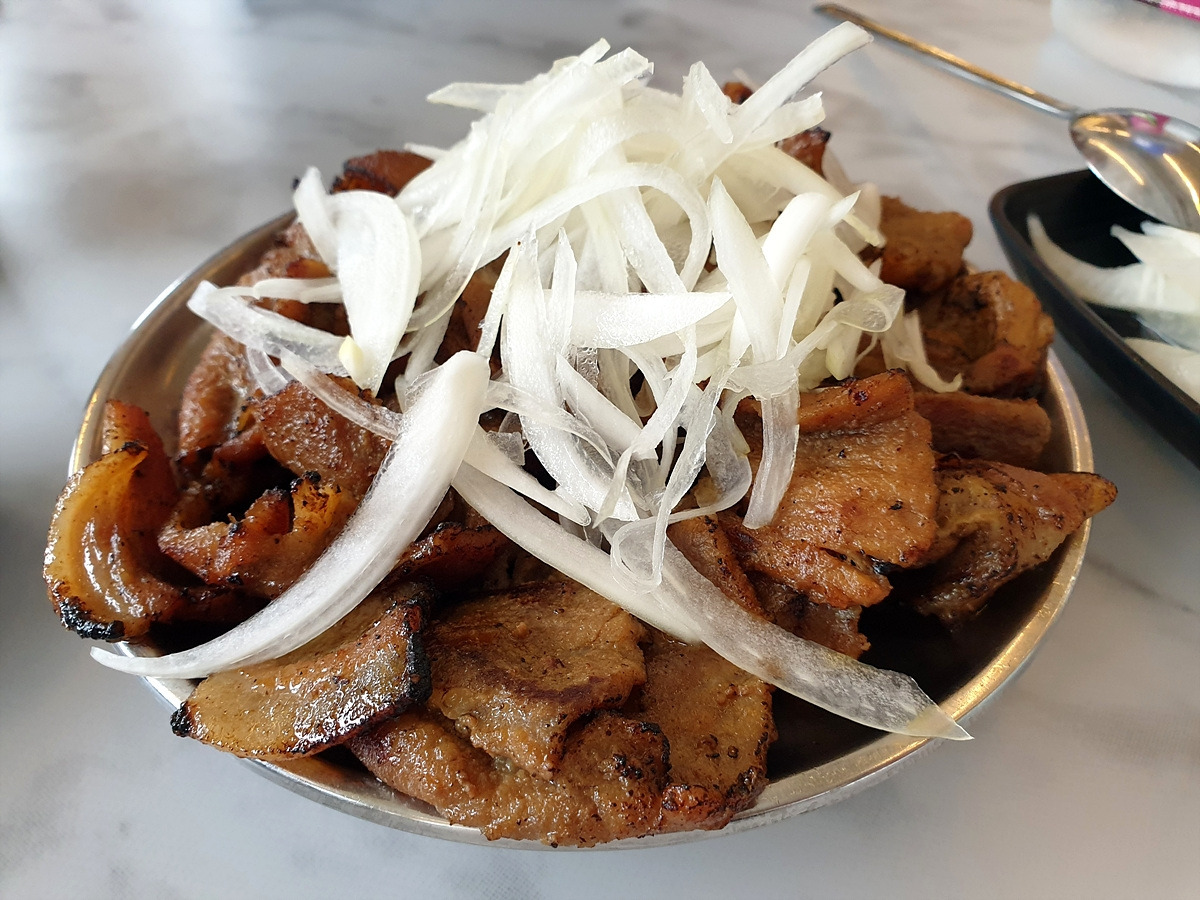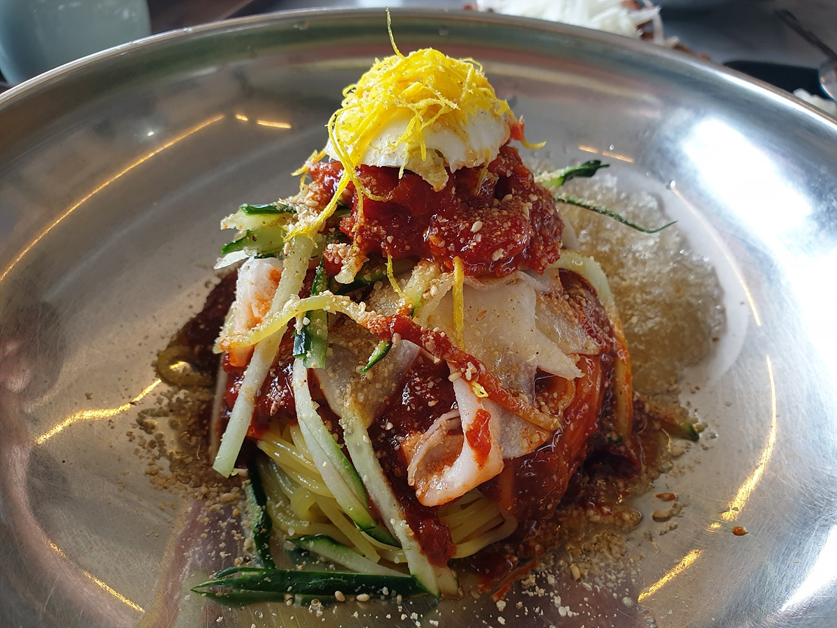 점심으로 밀면과 고기를 먹는다. 비도 오고 하니 따듯한 것을 먹으려 했는데 하필 가려던 식당이 문을 닫아 근처의 밀면집으로 왔다. 대단한 맛은 아니지만 충분히 맛있는 집이다.