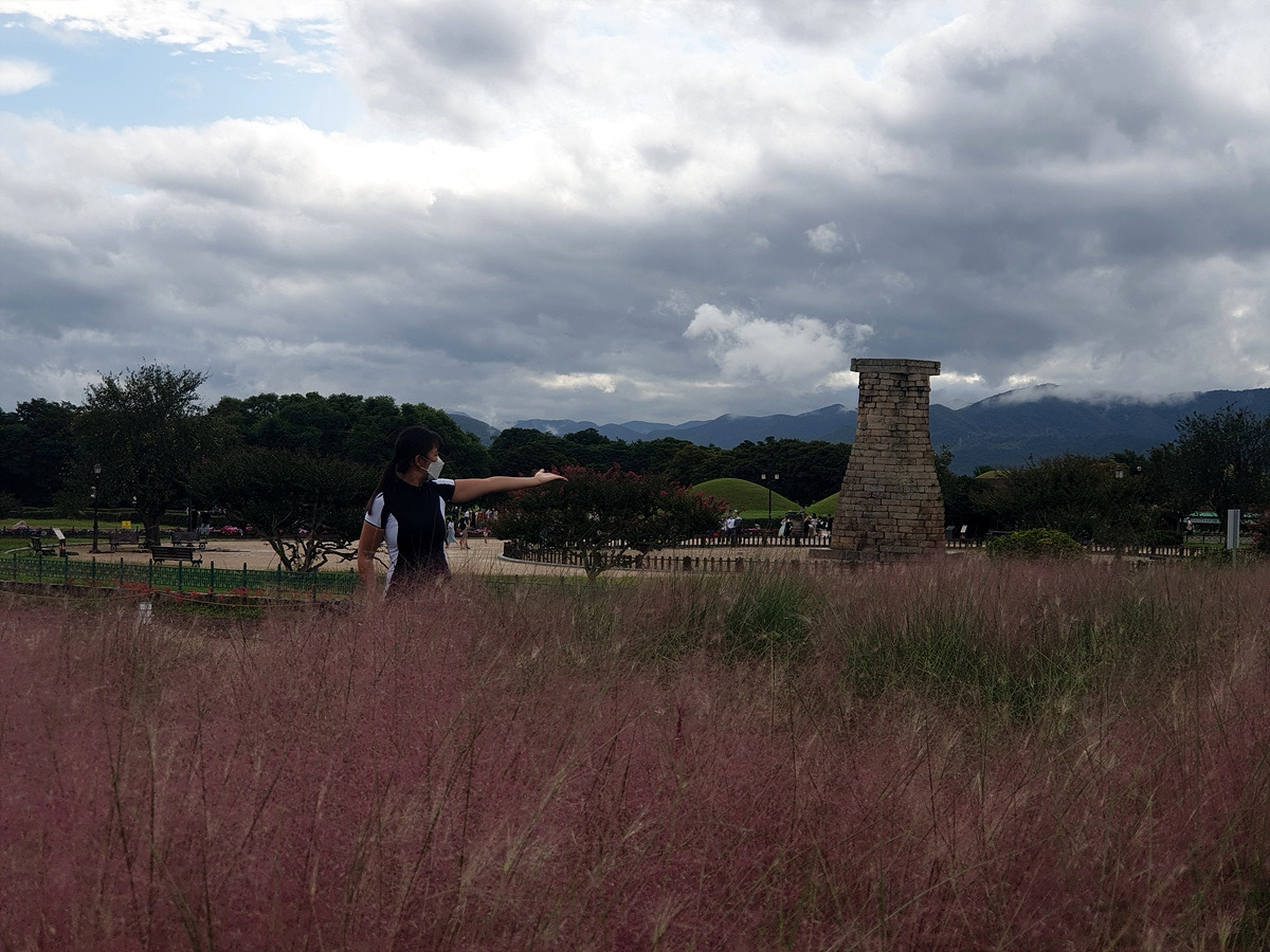 경주하면 첨성대다. 이제 비가 그치고 하늘이 개이니 사진이 이쁘게 나온다. 오랜만의 첨성대를 배경으로 인증샷을 남긴다.