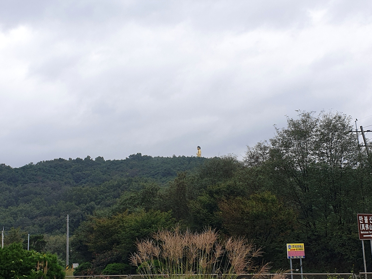 산꼭대기에 불상이 보인다. 영천 만불사라는 큰 절이 있다.