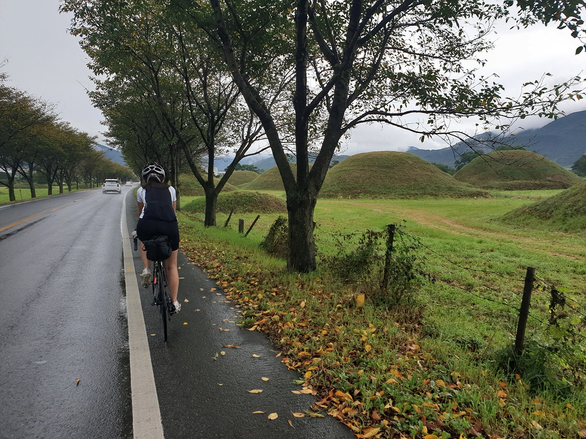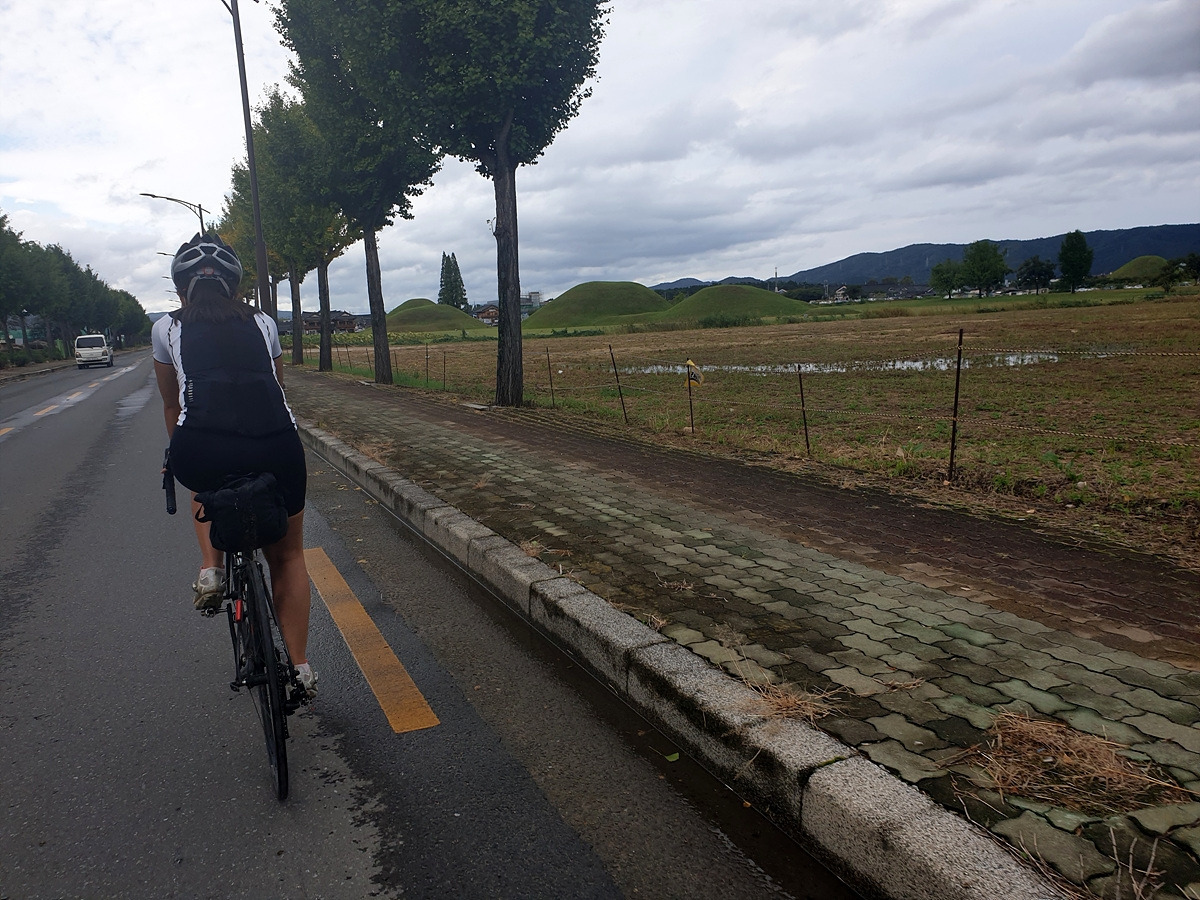 경주 시내에는 규모가 작은 게스트 하우스나 숙소들이 많다. 규모가 작다 보니 자전거를 두기가 쉽지 않은데 사장님이 카운터 근처의 빈 공간을 만들어서 자전거를 세워둘 수 있게 배려해주신다. 무사히 체크인하고 정비를 한 후에 다시 구경하러 나온다. 어딜 가도 무덤이다. 시간이 그리 여유 있지는 않으니 유료입장인 대릉원은 들어가지 않는다.