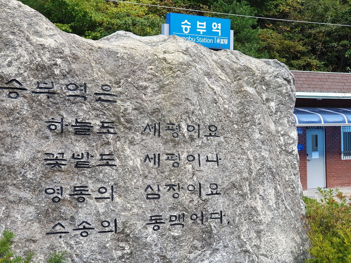공사 구간을 지나면 작은 마을인 승부리가 나오고 승부리를 지나면 승부역이 나온다.