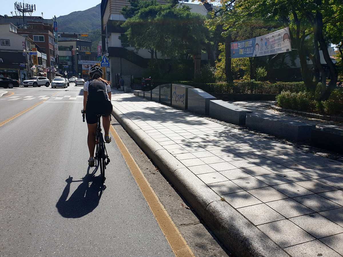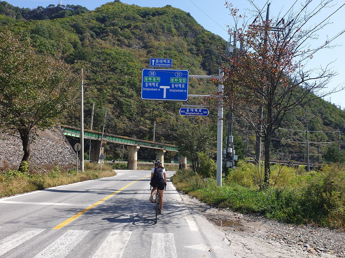 구문소까지 이어지는 이 동태백로는 태백로보다 차량 통행이 훨씬 적어 자전거가 다니기 좋다.