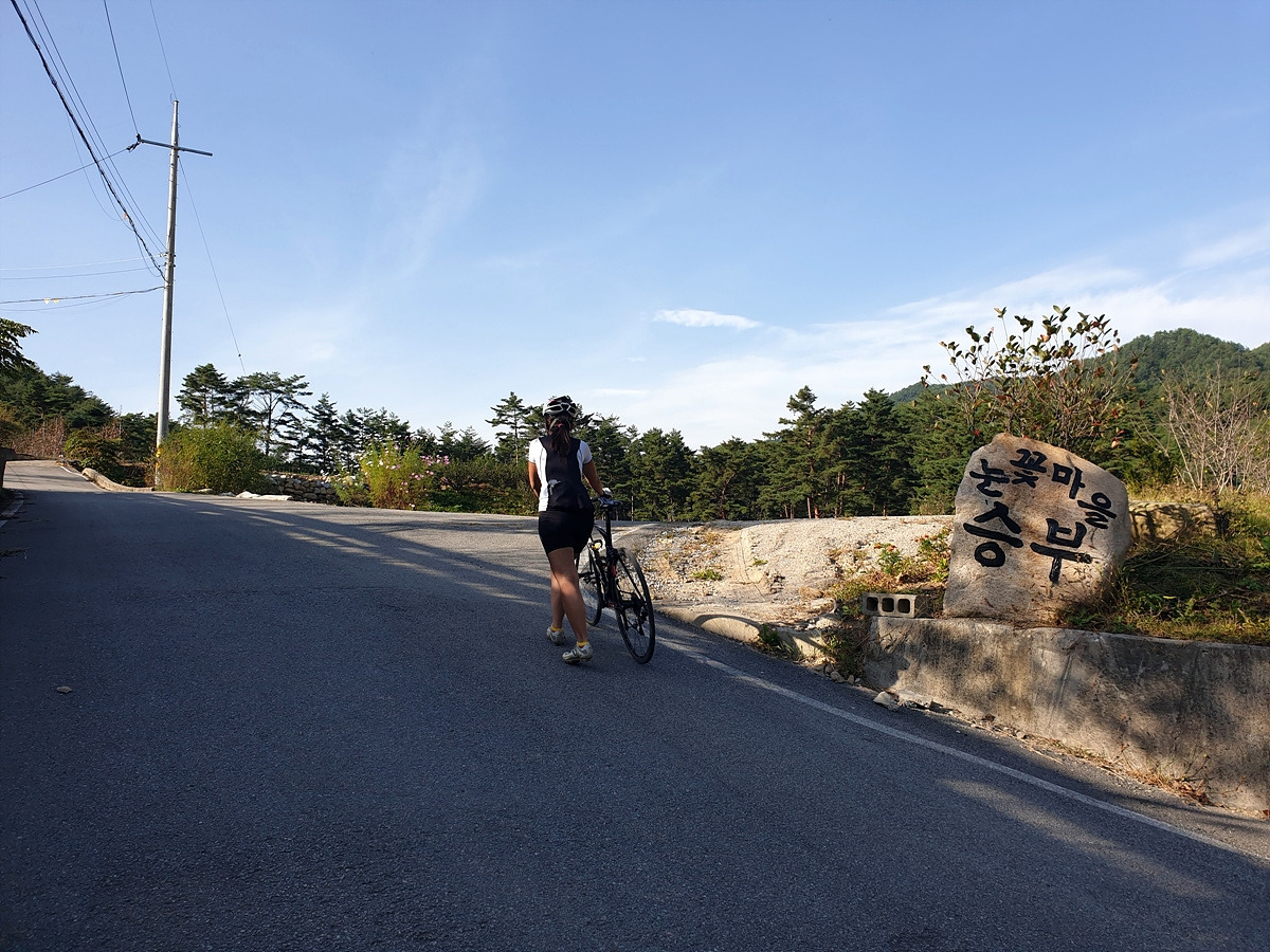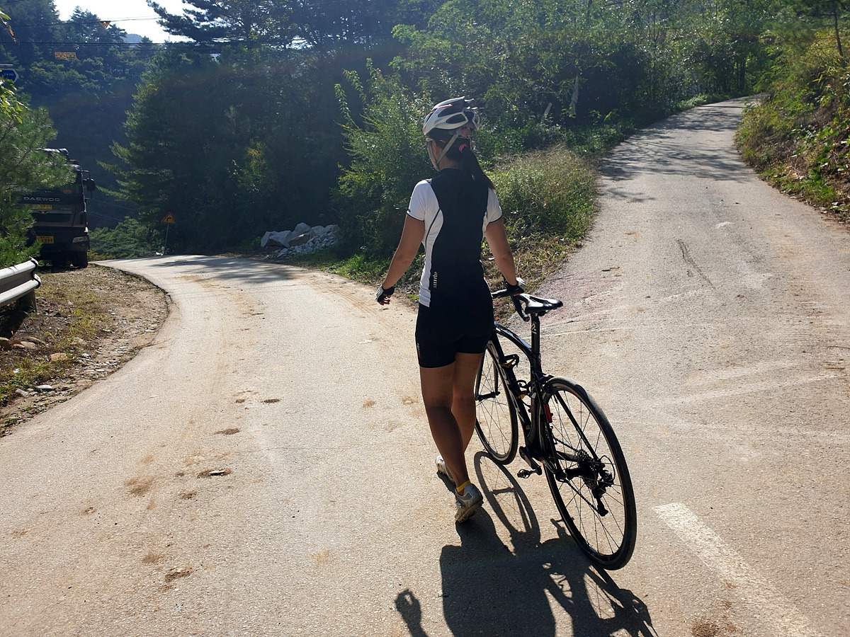 자전거들은 남쪽으로 갈 때 여기 연화산을 많이 넘어간다고 이야기는 들었는데 이번에 처음 올라가 보는 것이다. 생각보다 길고 가파른 언덕길이다. 생각보다 힘드니 다음부터는 옆 고개인 송이재로 다녀야겠다.