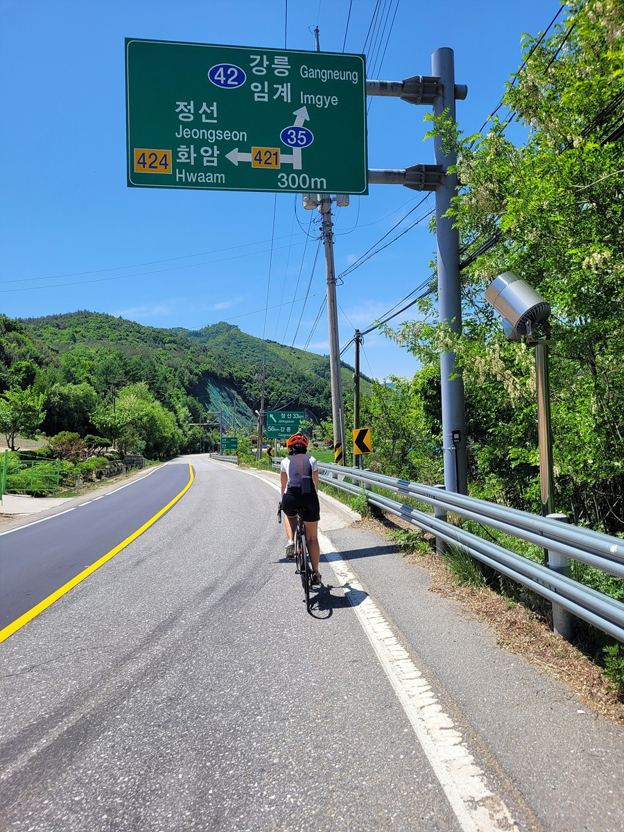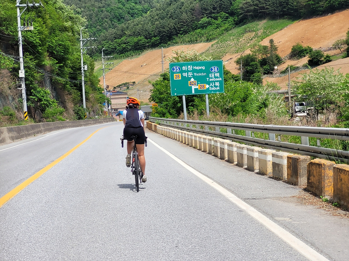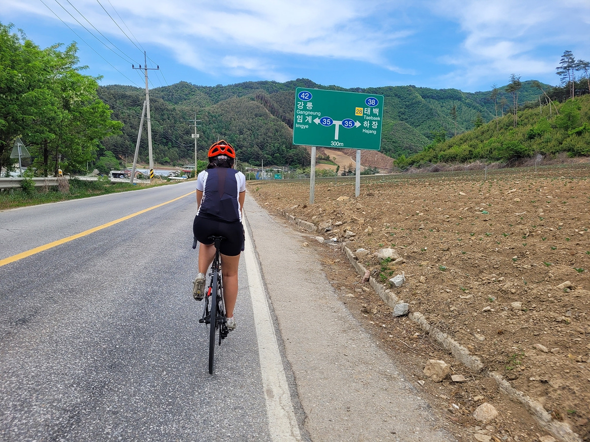 35번 국도를 따라 달린다. 이 35번 국도는 부산에서 영천과 태백을 지나 강릉까지 우리나라의 동쪽 내륙을 남북으로 이어주는 도로다. 두 자릿수 국도지만 태백에서 강릉 입구까지는 상당히 한적한 구간이라 자전거로 달리기 좋다.