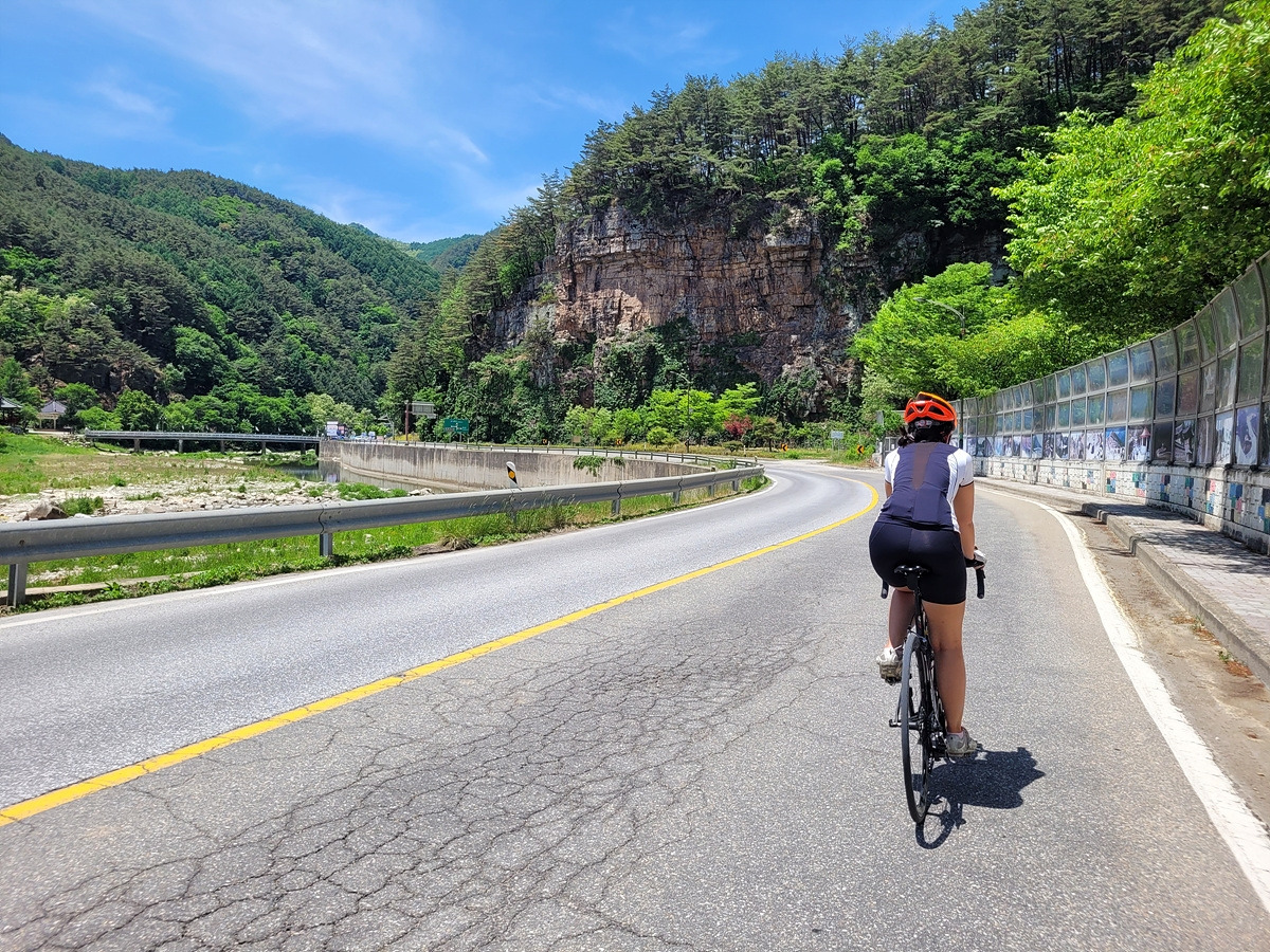 그리 긴 코스는 아닌데 어제 90여 km를 탄 상태에서 날도 살짝 더우니 지니님 컨디션이 안 좋다. 내려가면 화암면에 들러서 잠깐 쉬어가기로 한다.