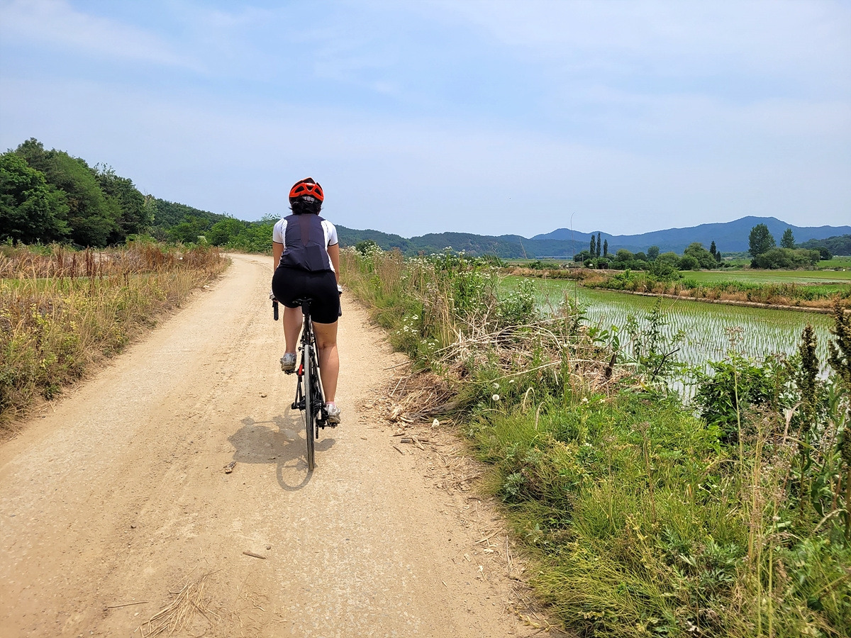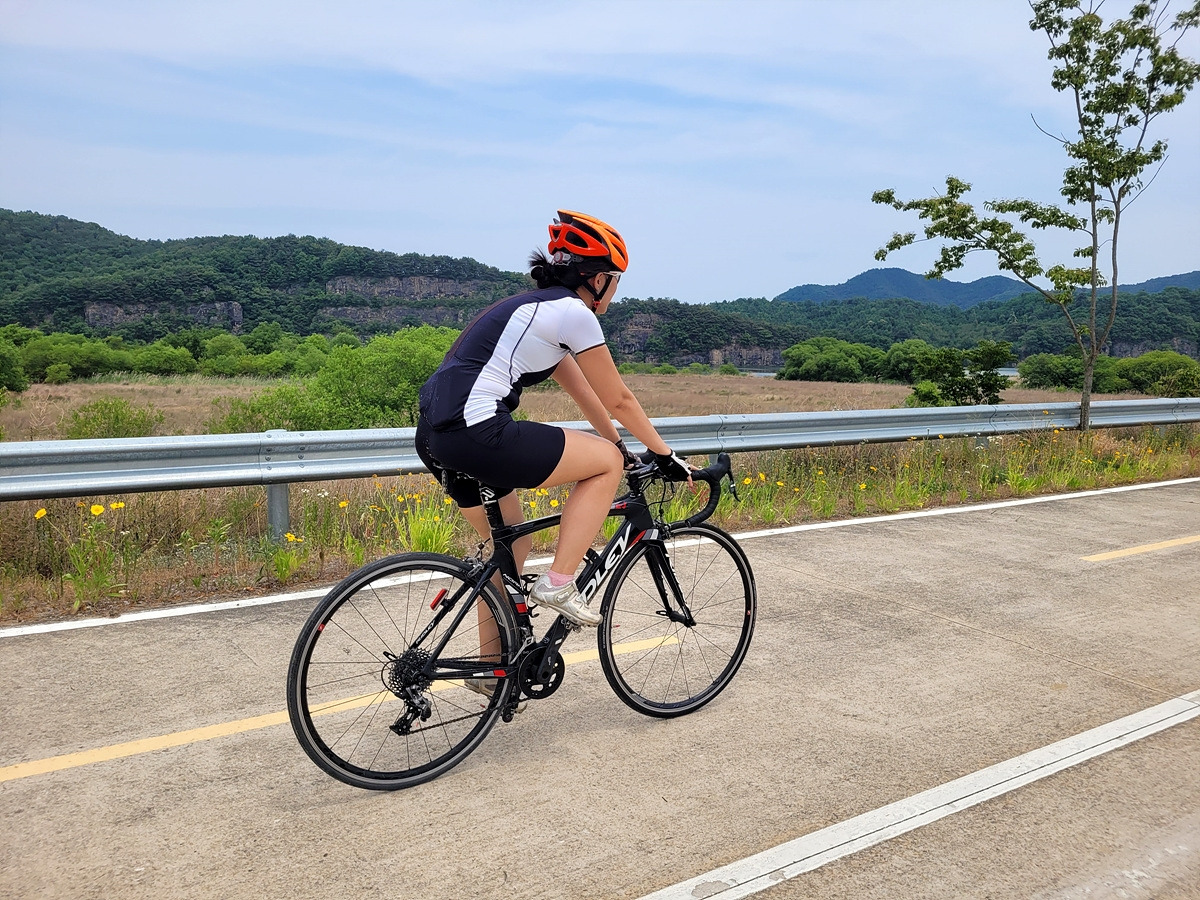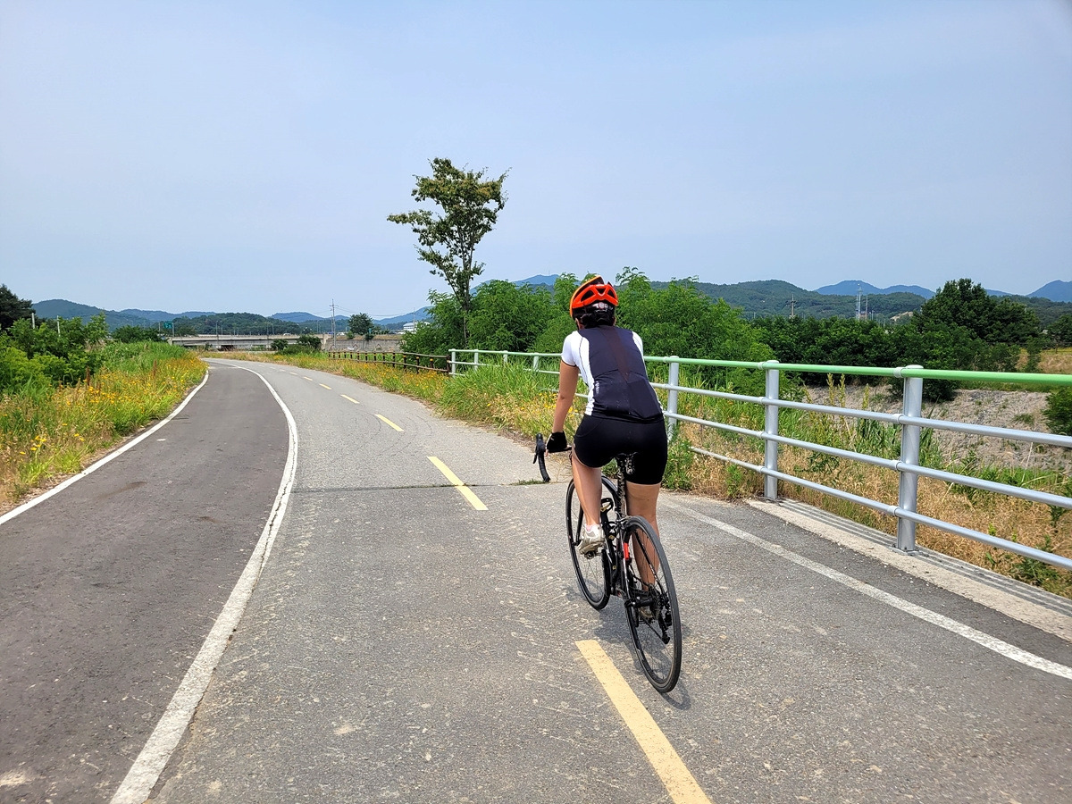 달리다가 자전거길이 작은 하천을 두 번째 꺾어져서 들어갈 때 빠져나가면 도개면으로 바로 들어갈 수 있다.