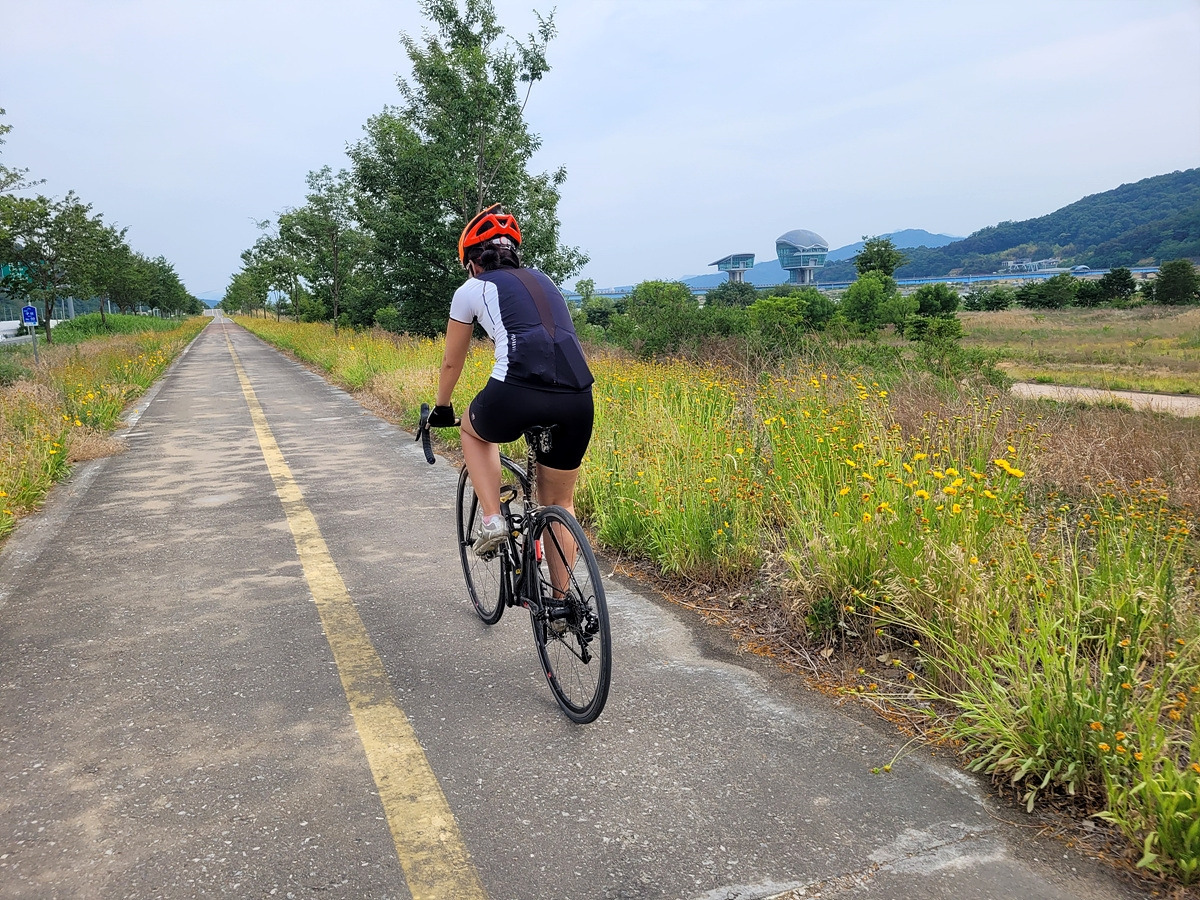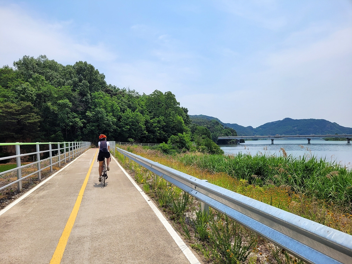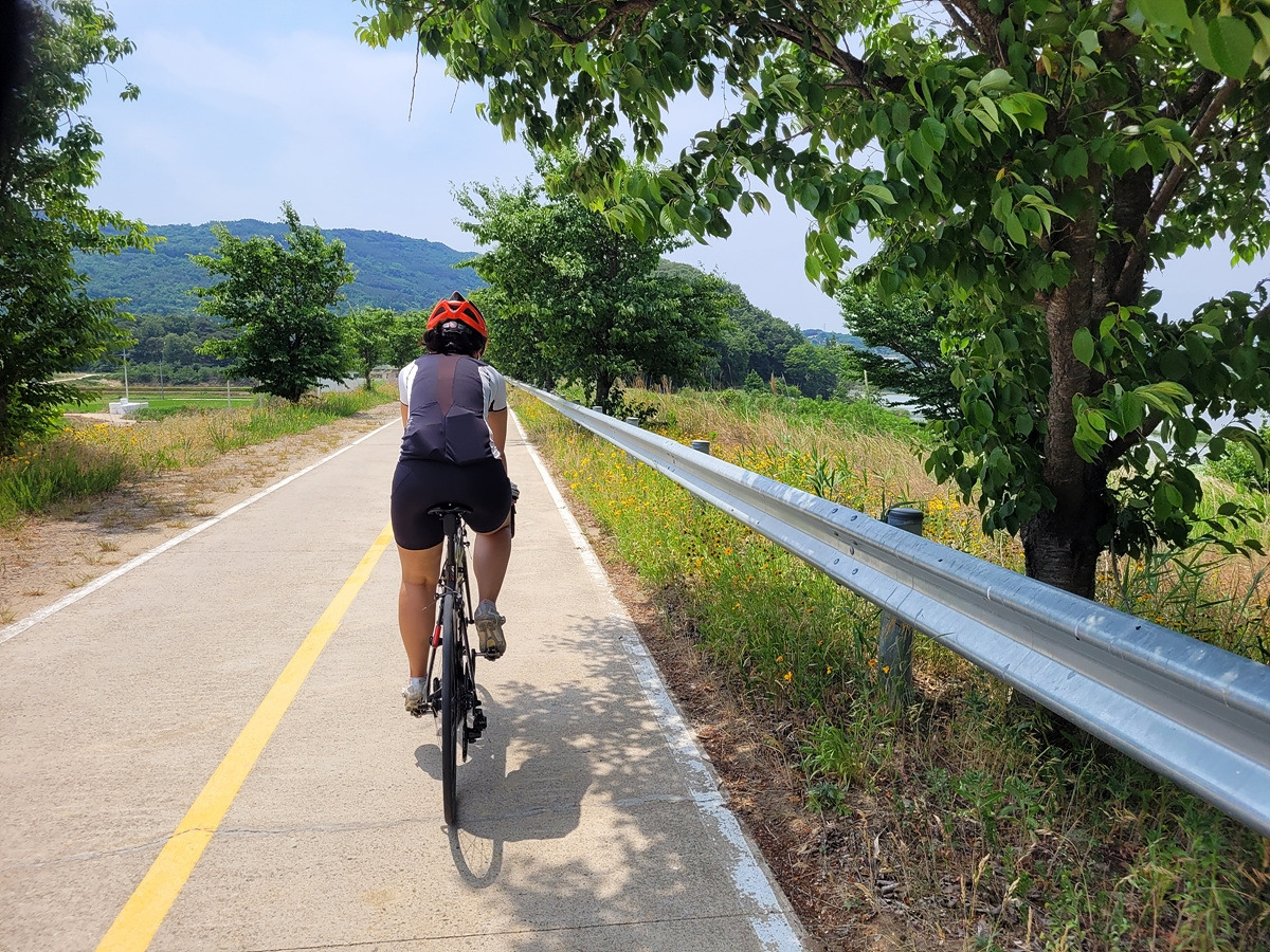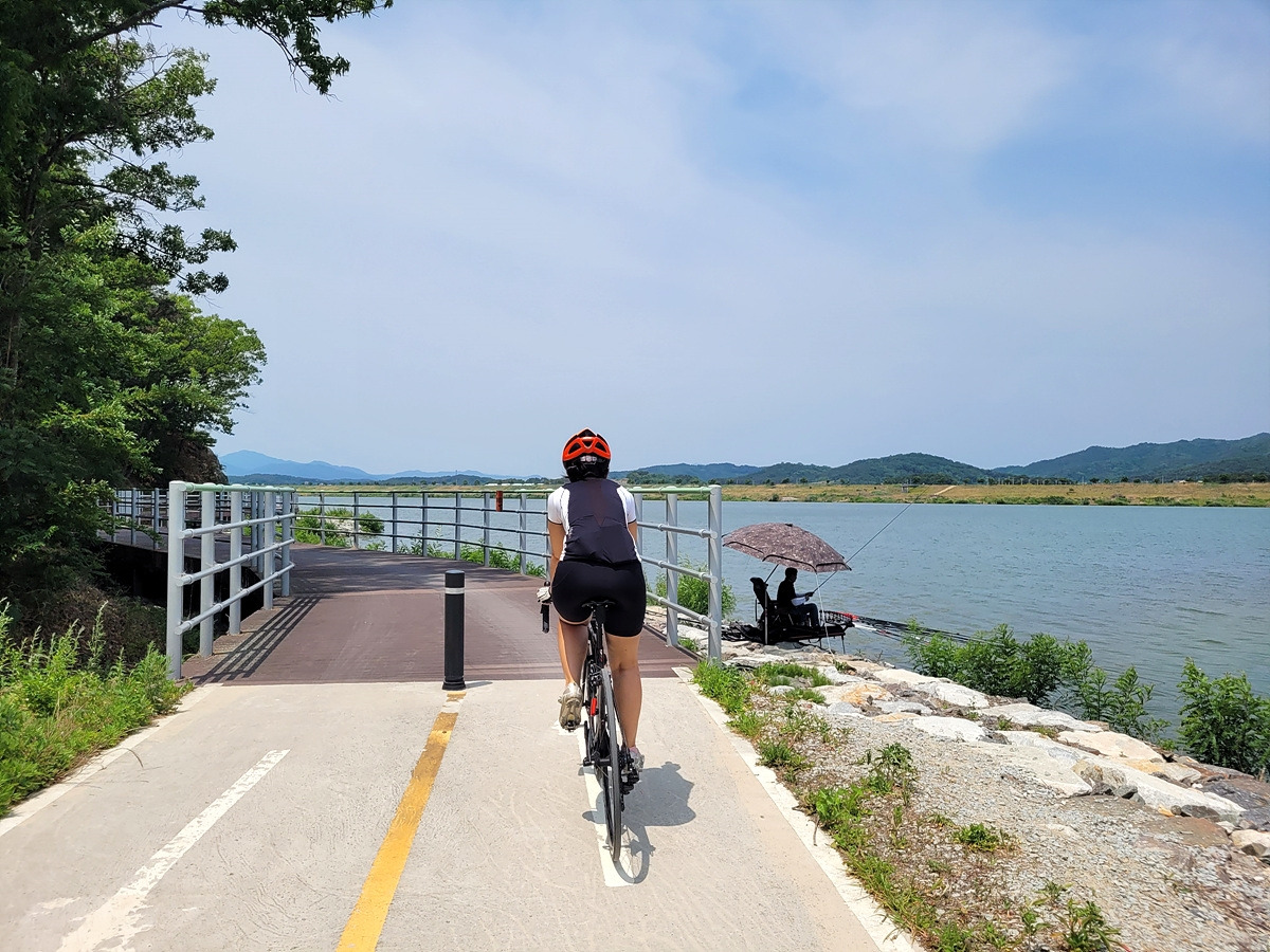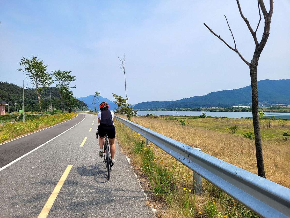 오랜만에 낙동강 자전거길을 달리는 것이라 처음 오는 것보다 오히려 신선한 느낌이었다. 큰 볼거리는 없지만 잔잔하게 흐르는 강물을 보면서 여유있게 달리니 힐링되는 풍경이다. 낙동강이 거리가 길다 보니 일정을 짧게 잡고 도장을 찍기 위해 열심히 달리는 사람들은 앞만 보고 달리느라 잔잔한 경치가 눈에 들어오지 않는다. 지금 자기가 어디 있는지도 잘 모르고 그저 낙동강 어딘가를 달린다는 생각밖에 없을 것이다. 나도 도장 찍기를 한 번 완료했지만 많은 사람들이 도장 찍는 것만을 목적으로 하는 것 같아서 국토종주 인증은 그리 좋아하지 않는 자전거 여행 방법이다. 자전거 여행은 놀러 다니는 것이지 숙제하러 다니는 것이 아니다. 그렇게 긴 거리를 애써서 달렸는데 남는게 도장 찍힌 수첩과 허접한 기념품 뿐이라면 자전거 여행이 아깝지 않은가.