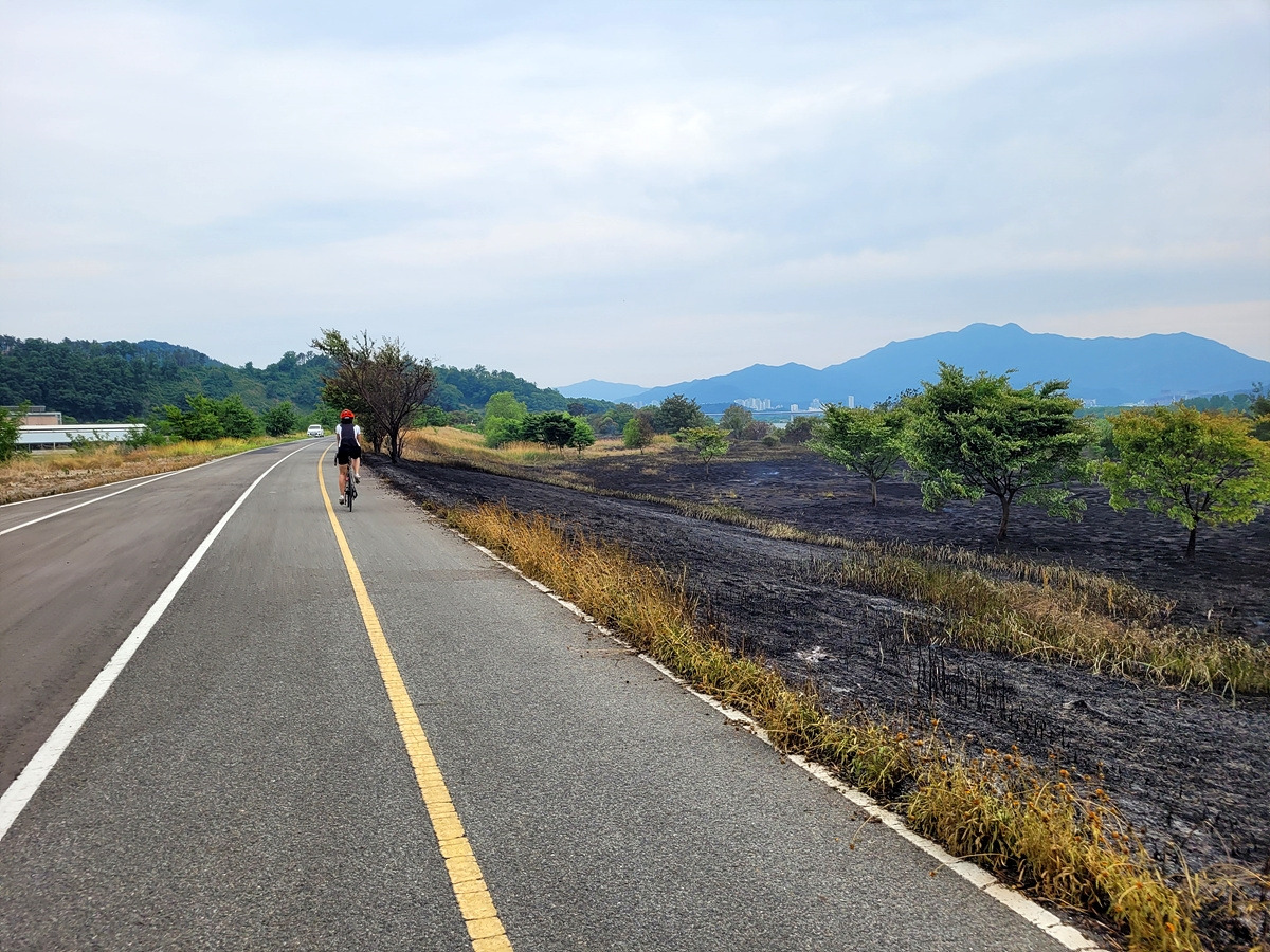성수리 쪽에 강변이 온통 까맣다. 여기저기서 연기가 올라가고 소방차들과 소방대원들이 많이 보이는 걸 보니 들에 불이 나서 방금 진화된 모양이다. 울진 쪽으로도 산불로 난리인데 전국에서 크고 작은 불이 난리다. 이렇게 인명피해나 재산 피해가 없는 화재는 뉴스에도 안 나온다.