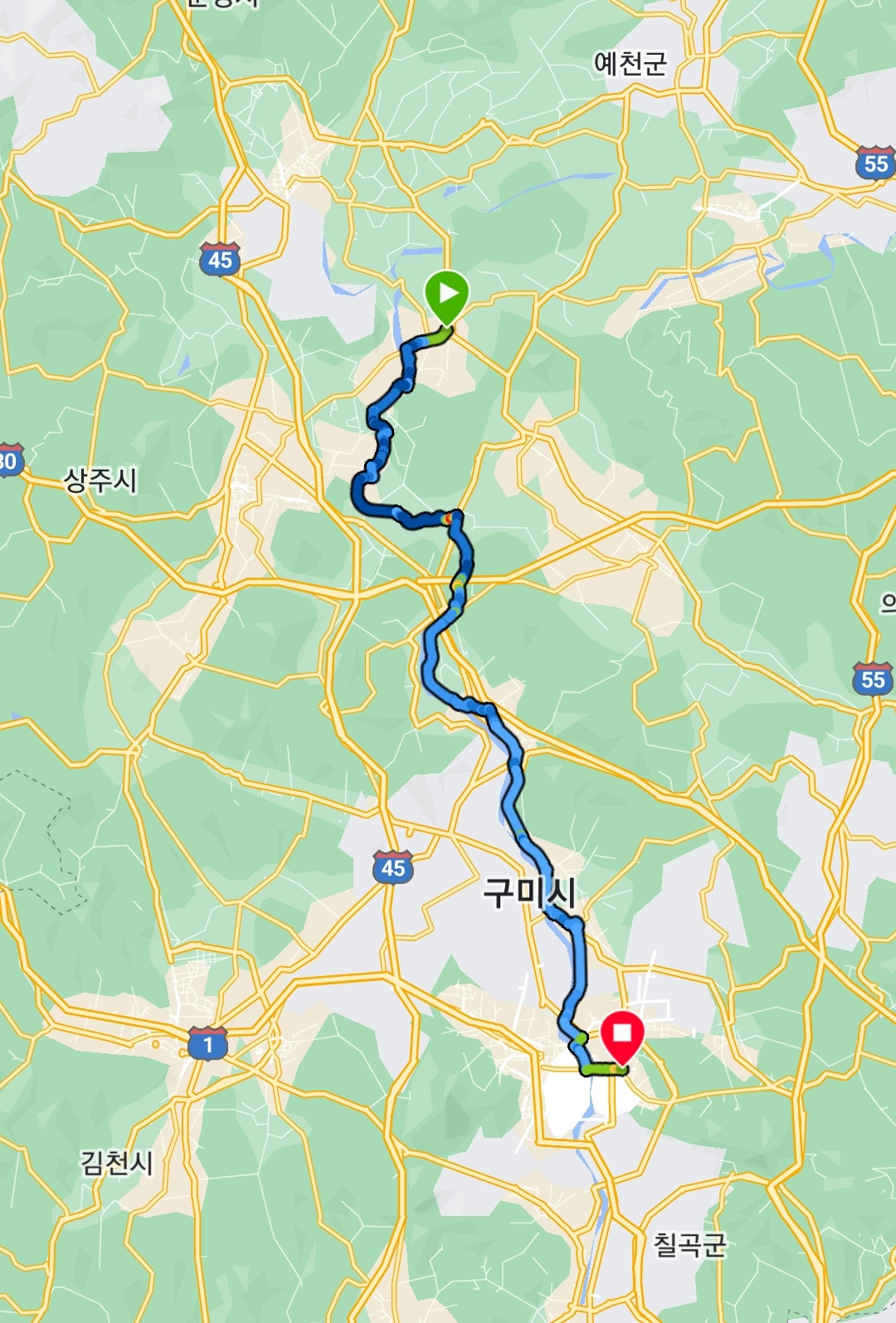 산호대교와 구미대교를 건너서 구미 시내에 도착했다.