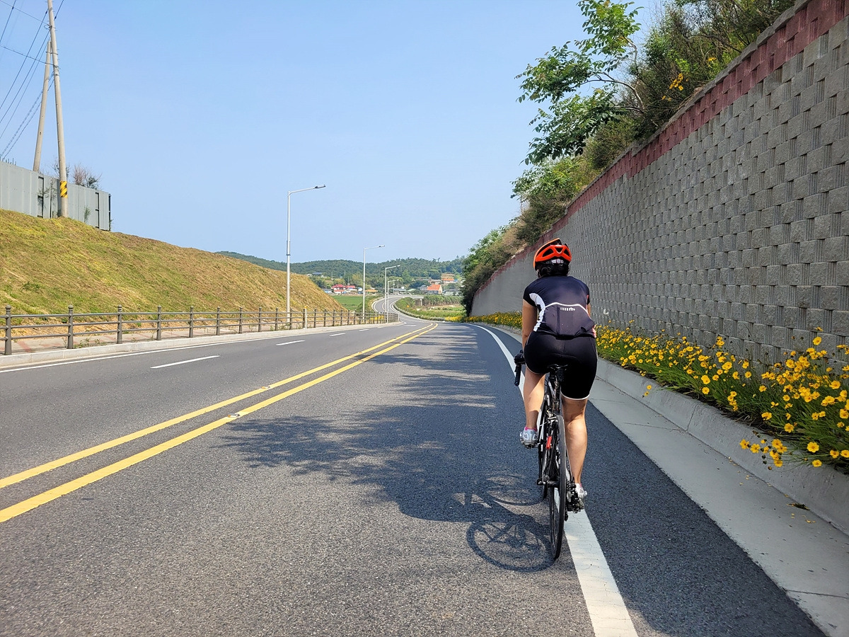 이제 전체의 2/3 정도 온 것 같다. 점심도 든든히 먹었으니 다시 달리기 시작한다. 가야 할 길 이름이 참 직관적인 해안관광로다.