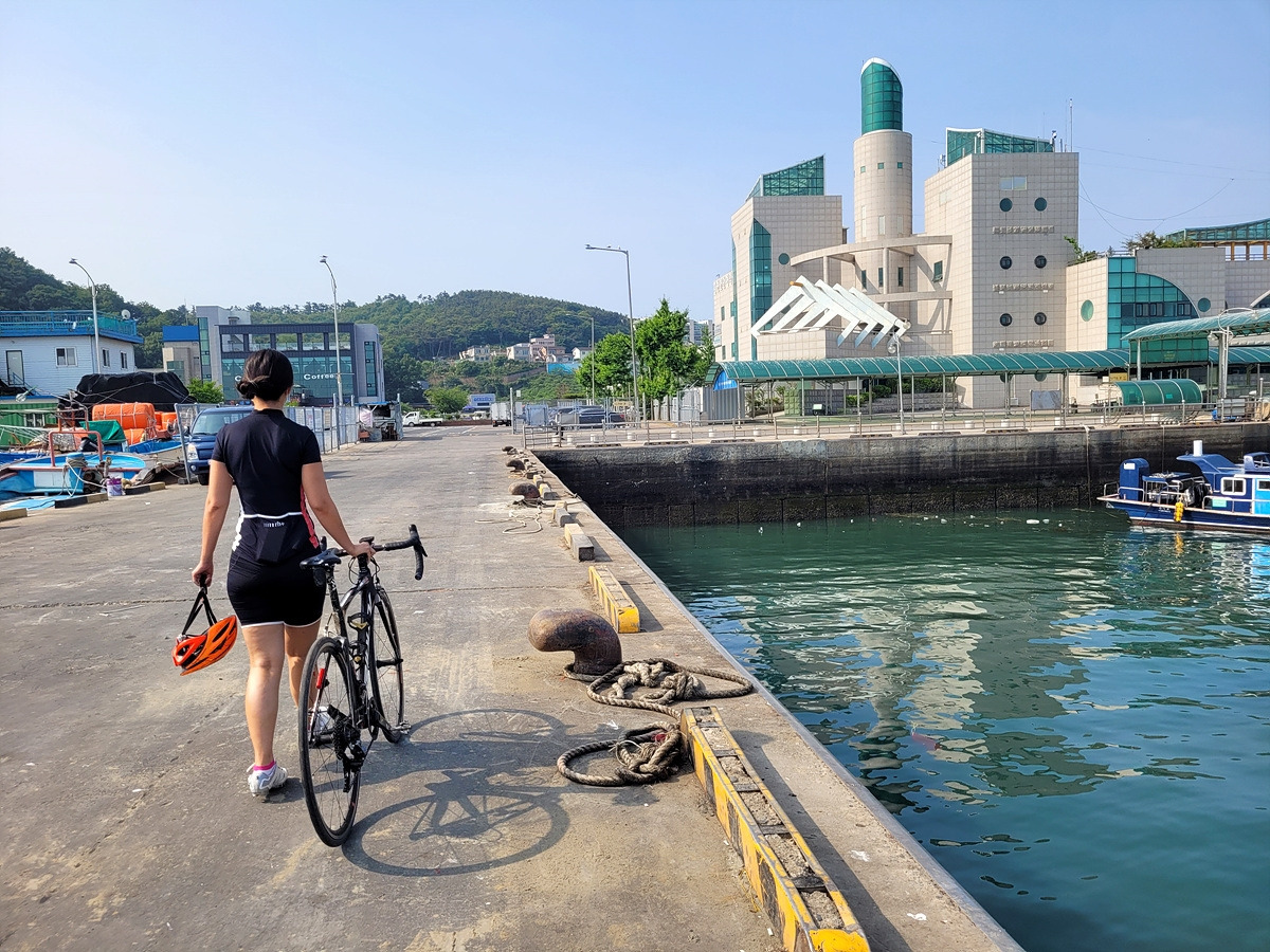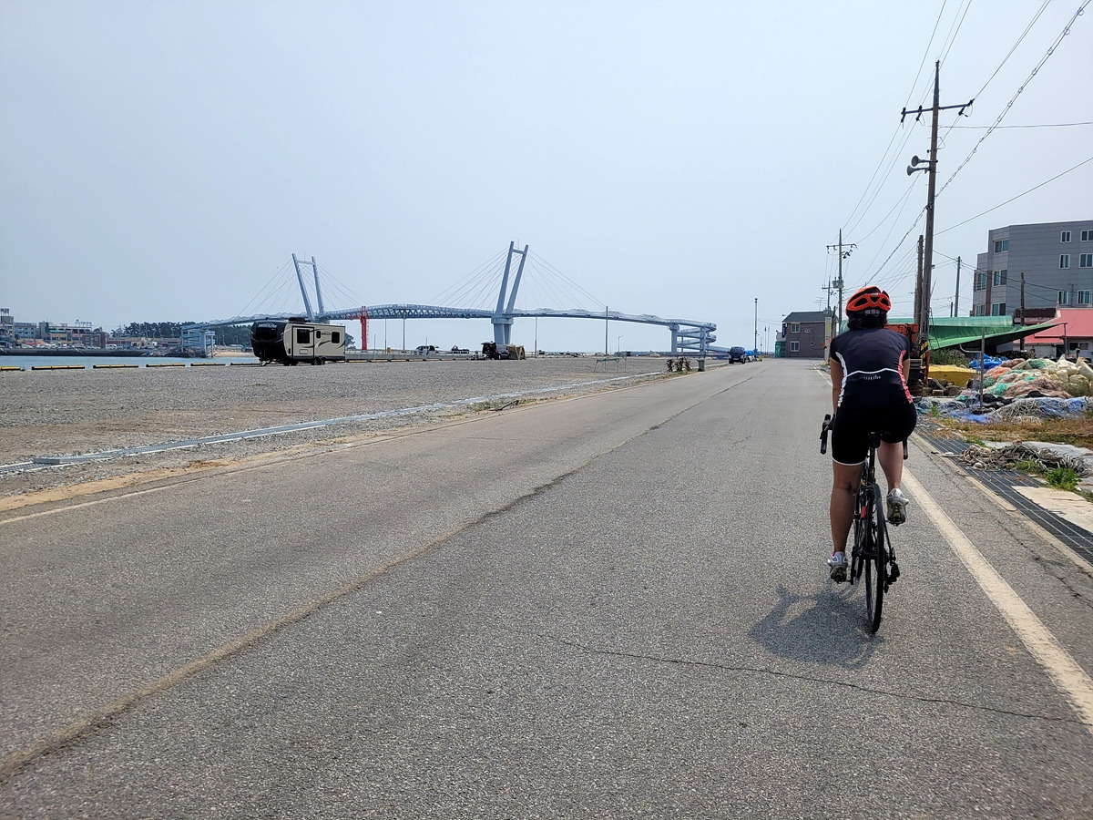 드르니항 자체는 식당 몇 외에는 뭐가 없다. 다리를 건너 백사장항으로 간다. 인도교니 당연히 자전거에서 내려서 끌고 걸어간다.