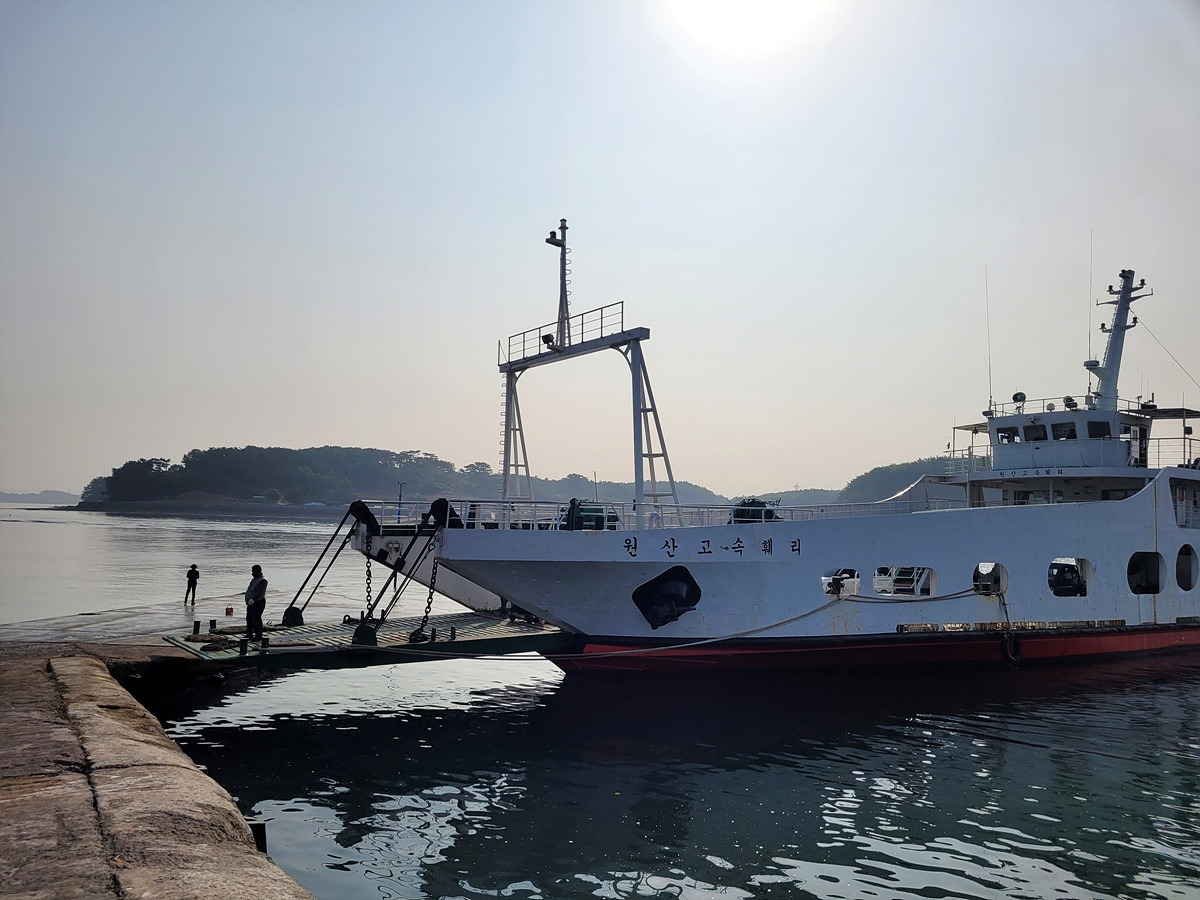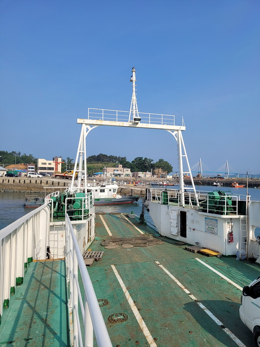 그리 오래 걸리지 않는 뱃길이니 객실에서 멍 때리기보다는 밖에 나와 구경한다. 우리 말고는 다들 지역 주민들이라 그런지 객실에서 나오는 사람은 없다. 3층으로 올라가서 뒤를 돌아보니 선촌항과 원산안면대교가 보인다. 오후에 저 다리를 건너 선촌항으로 돌아가면 오늘 여정이 끝나는 것이다.