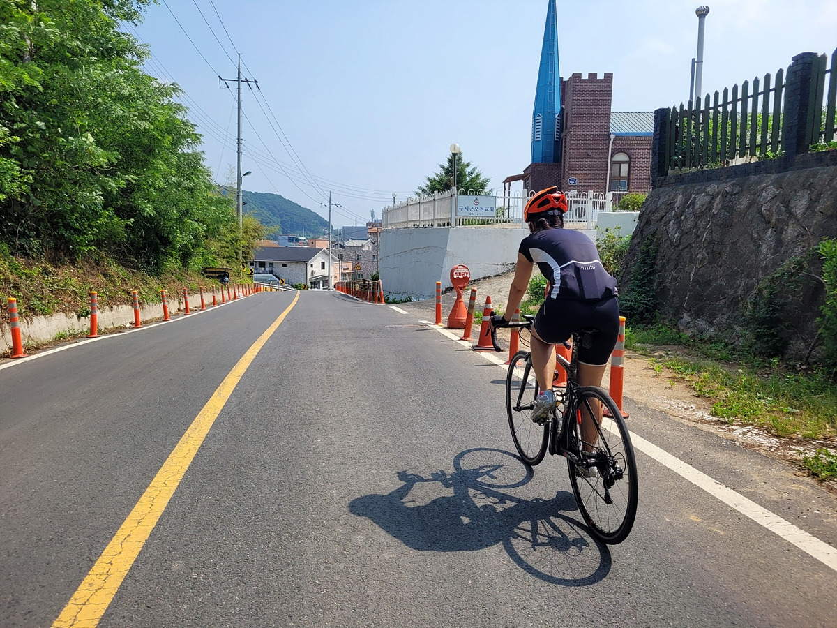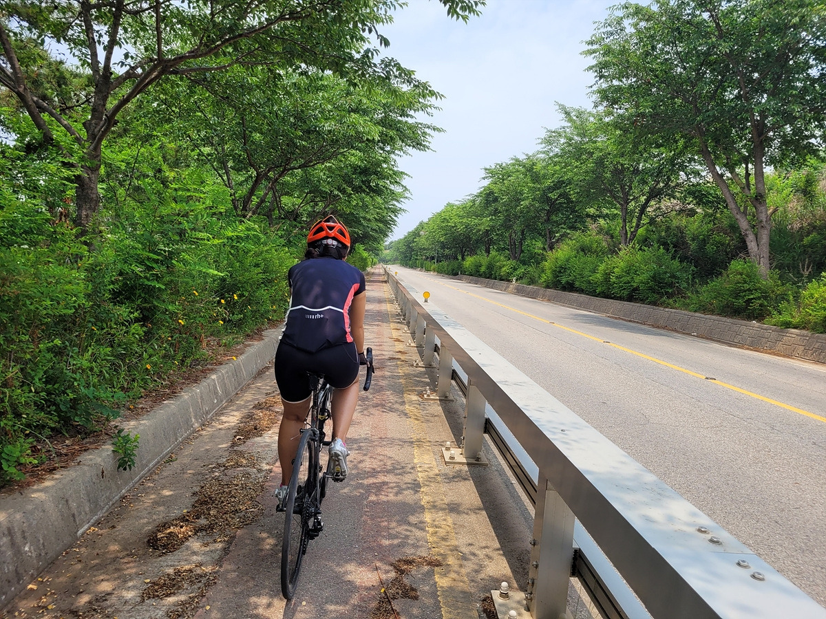 결국 이 자전거길은 자전거인들이 그렇게 싫어하는 인도 겸용 자전거길이 되어서 그냥 도로로 달리기로 한다.