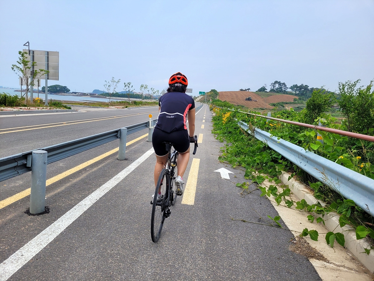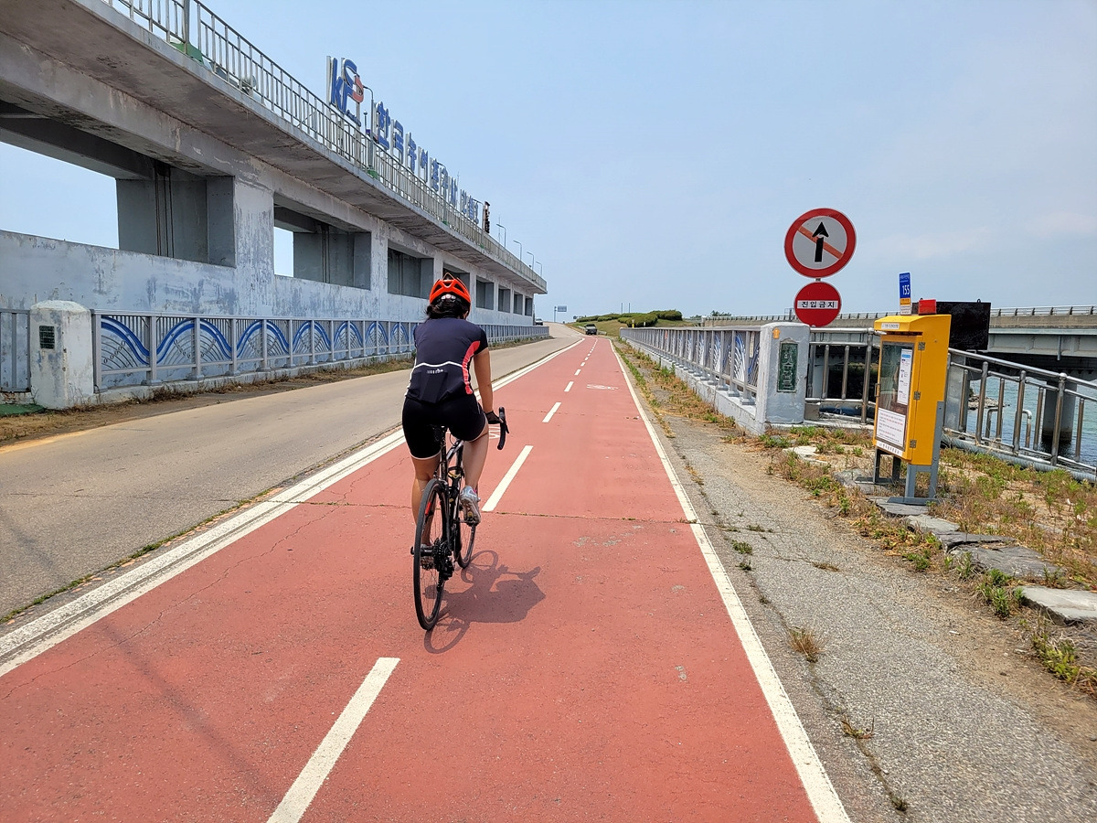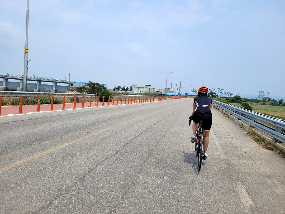 도로로 달린다고 해도 서산 방조제 입구에서 자전거길을 다시 따라가야 한다.