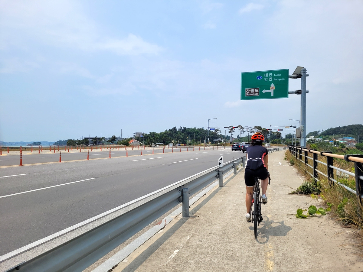 배를 채웠으니 다시 출발한다. 아침을 조금 늦게 먹었으니 열심히 달리다가 안면도 입구쯤에서 늦은 점심을 먹을 생각이다. 오늘 코스는 바닷가에 최대한 붙어서 달리면 되는 길이라 길이 어렵지는 않다. 배를 미리 타고 건넜고 배도 든든히 채웠으니 느긋하게 달리기만 하면 된다.