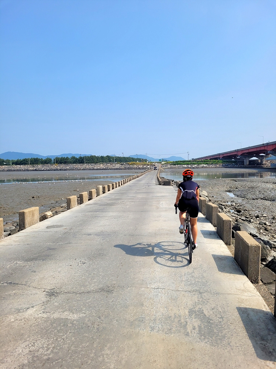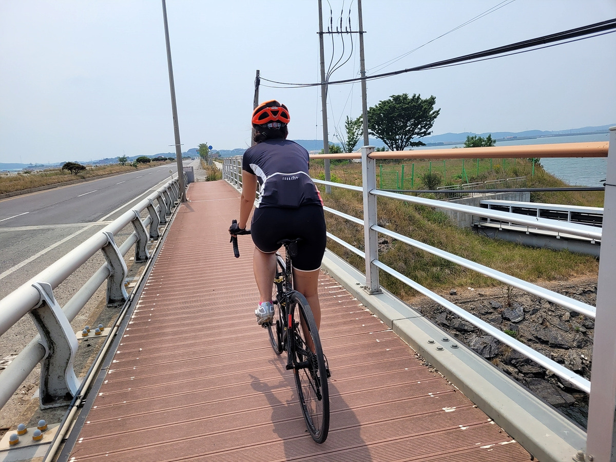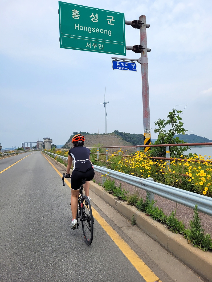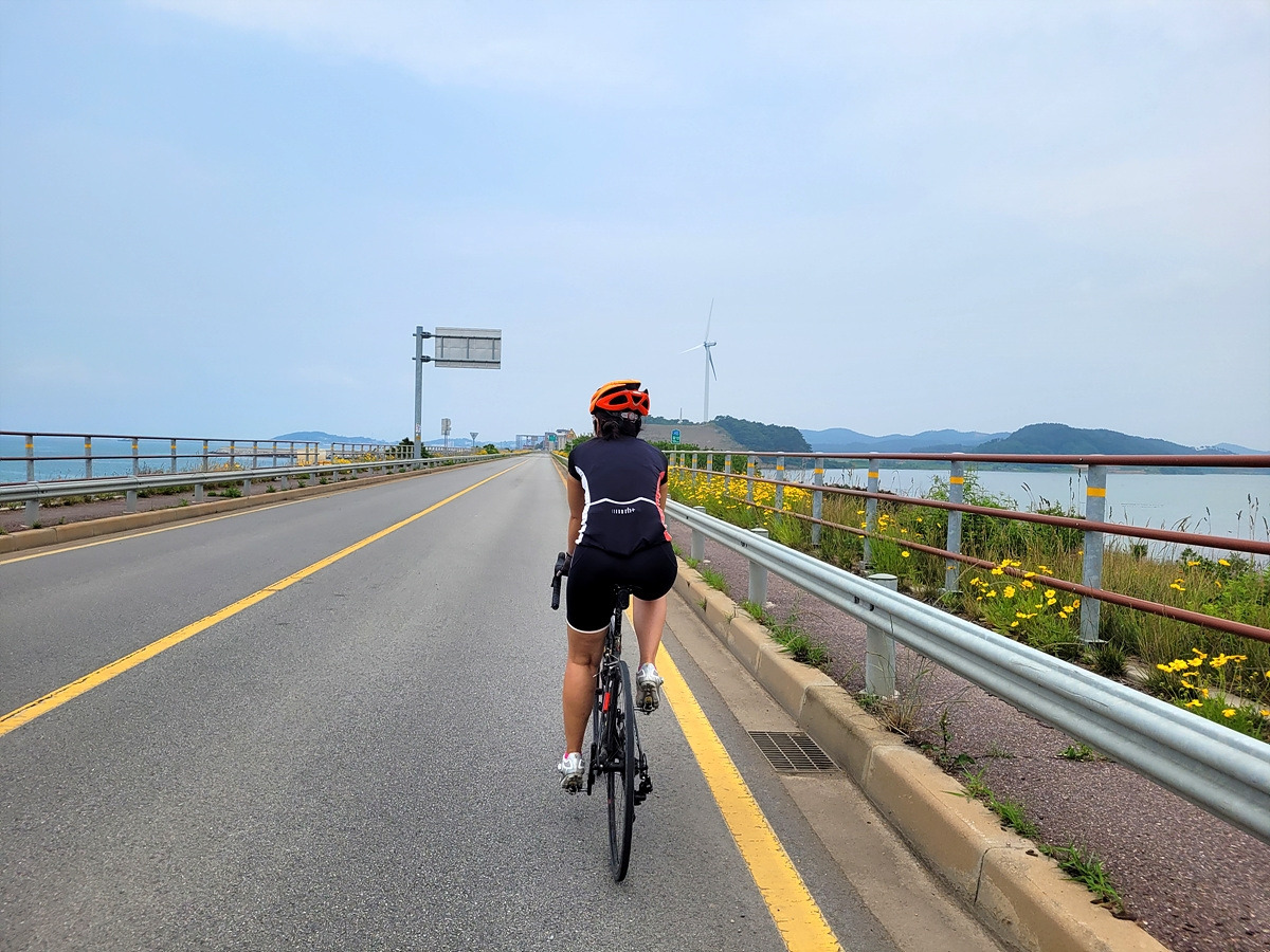 이제부터는 대천방조제길을 따라간다. 자전거길이 있긴 한데 영 상태가 안 좋아서 오히려 위험한 길이다. 차량 통행이 적은 길이니 무리해서 자전거길로 갈 필요는 없는 것 같다.