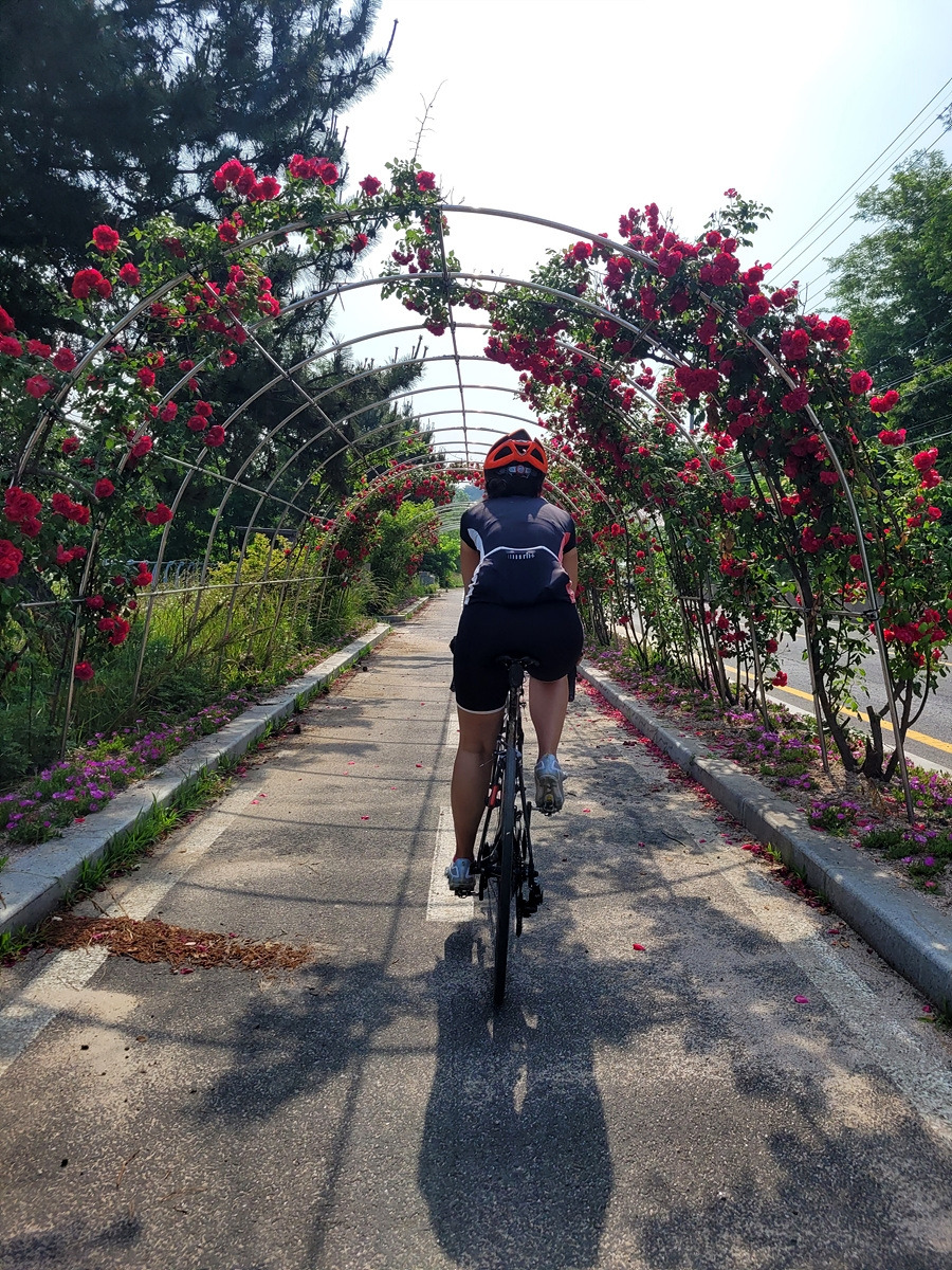 올해는 이 자전거길을 장미 터널로 꾸며놨다. 한참 가꾸는 중인지 화단에 꽃을 심는 분들이 있다.