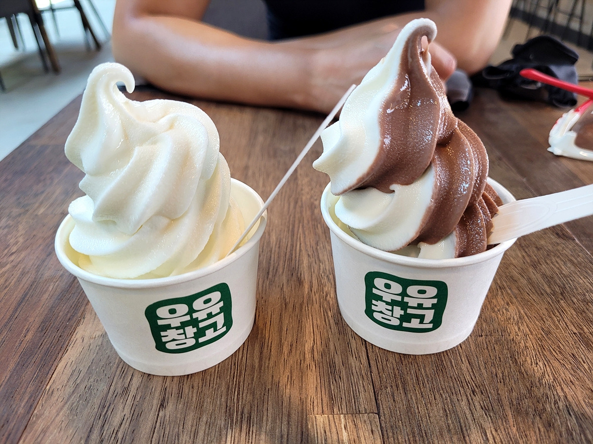 점심시간인데 음료와 아이스크림 외에는 죄다 품절이다. 지니님은 우유 아이스크림, 나는 쵸코 반반을 먹었는데... 생각보다 우유맛이 진하거나 특별하진 않다.