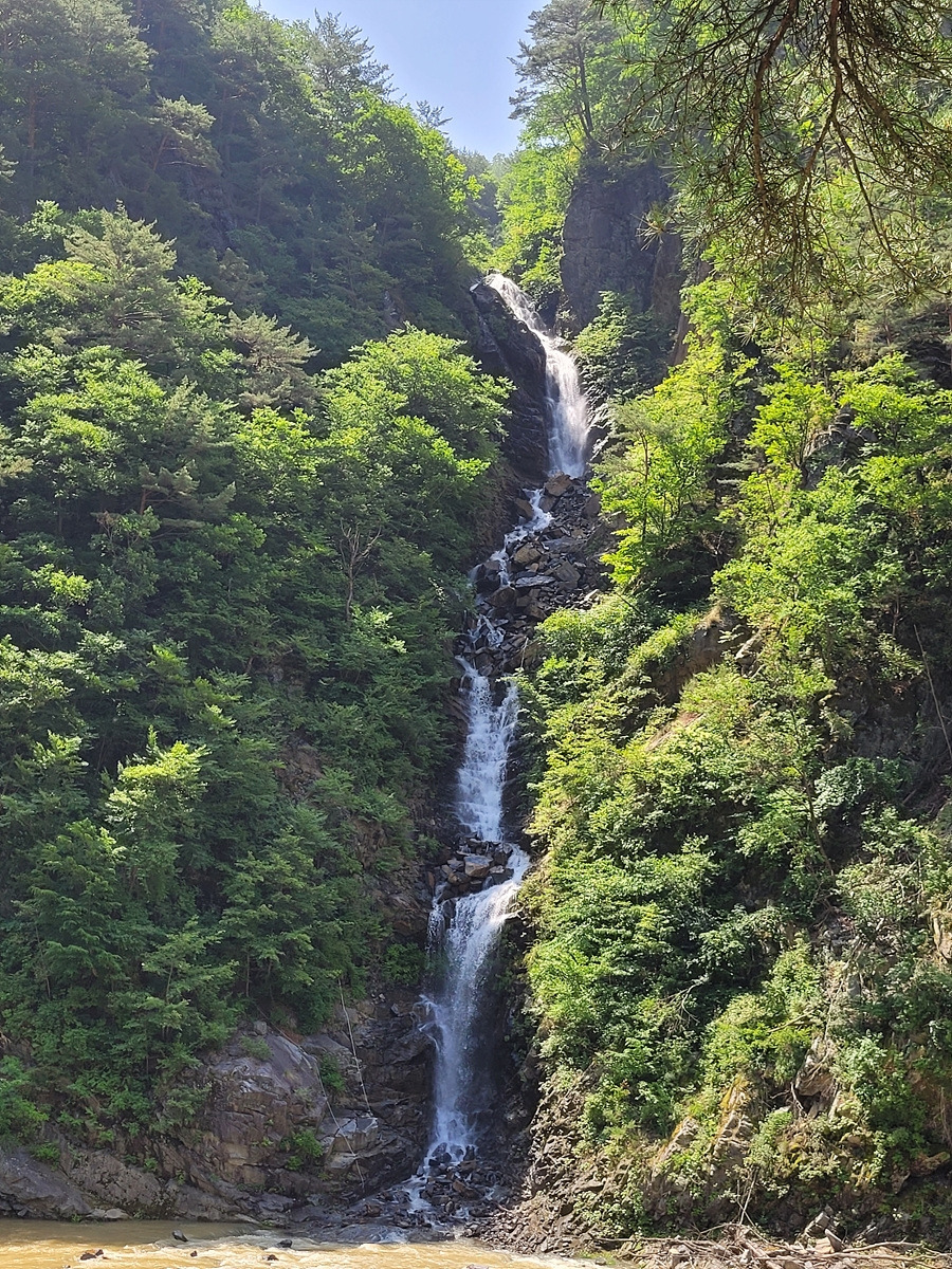 조금 더 내려가면 시원하게 흐르는 오장폭포가 나온다. 120m의 높이에서 그림같이 쏟아지는 멋진 폭포는... 인공폭포다.