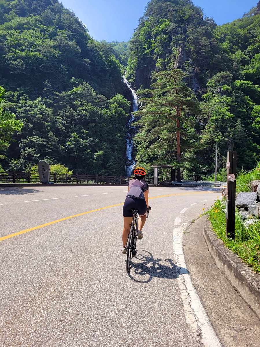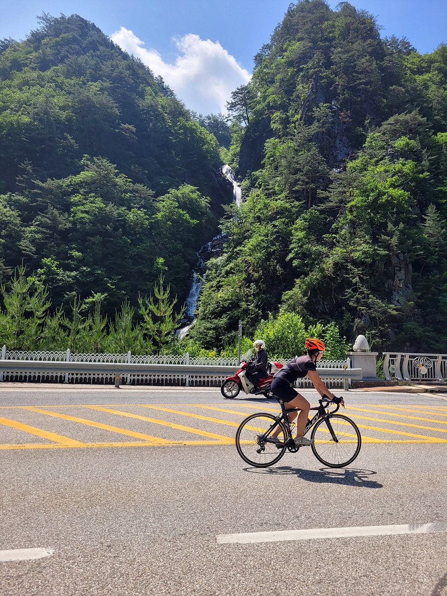 인공이면 어떠랴. 폭포를 바라보면서 잠시 쉬었다가 간다. 오늘 출발하고서는 첫 휴식이다. 분명히 내리막길이 많은 코스인데도 날이 더우니 은근히 지친다.