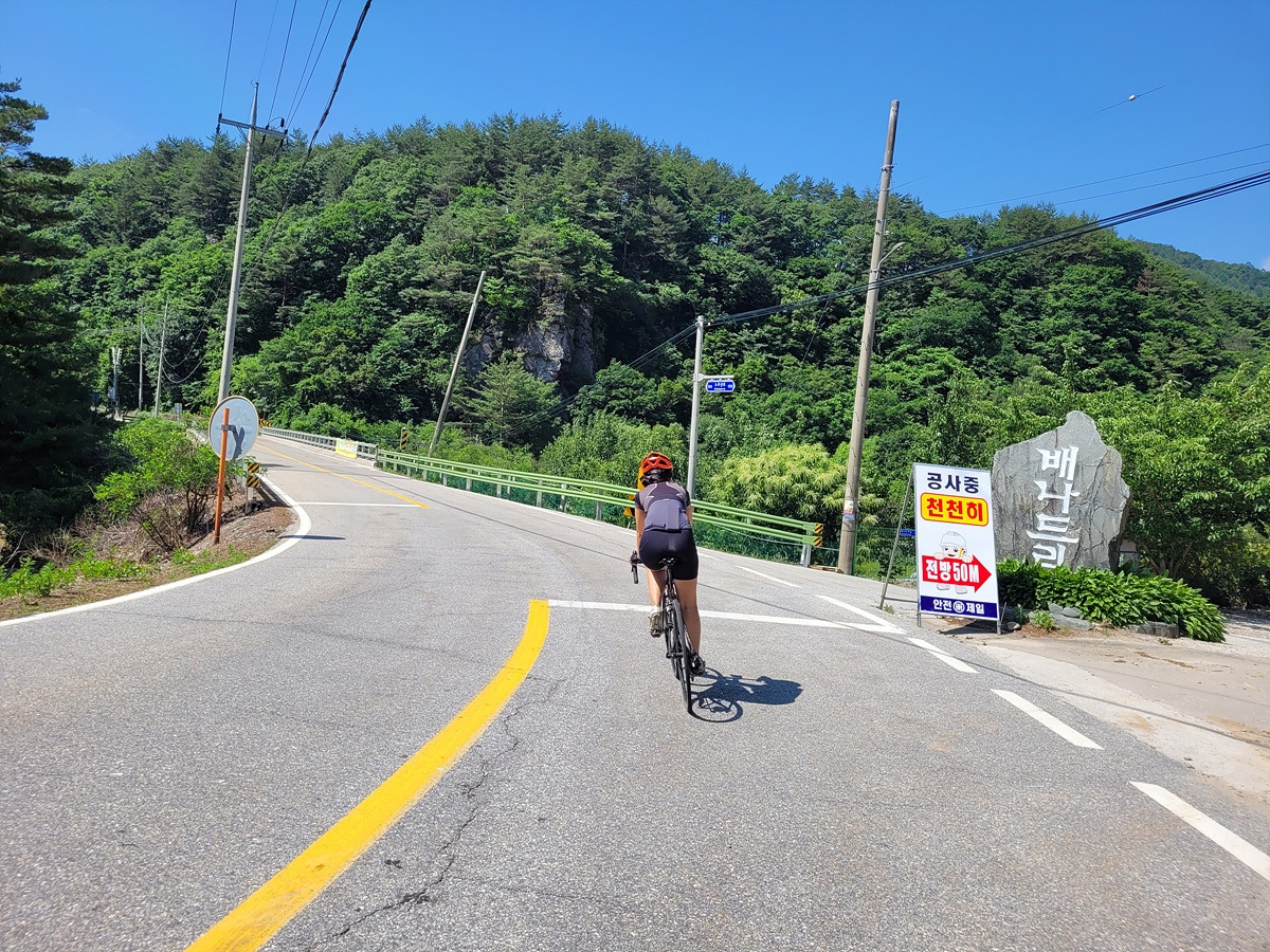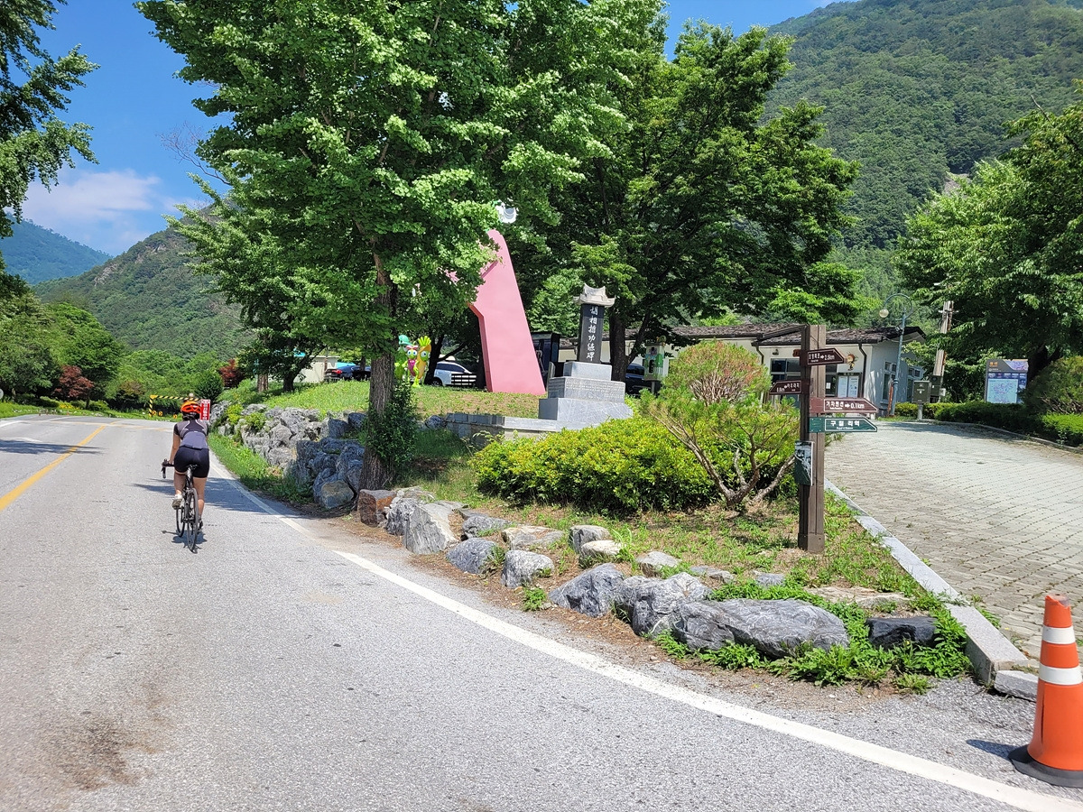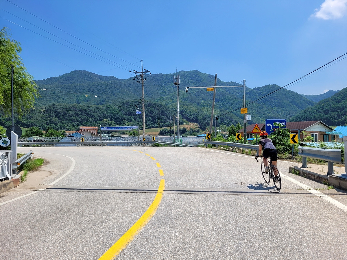 마을에서 나가자마자 우회전해서 골지천길을 계속 달린다.