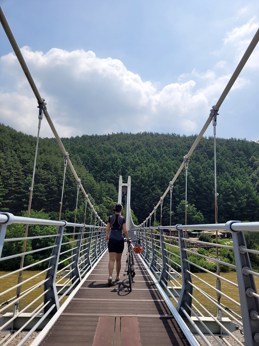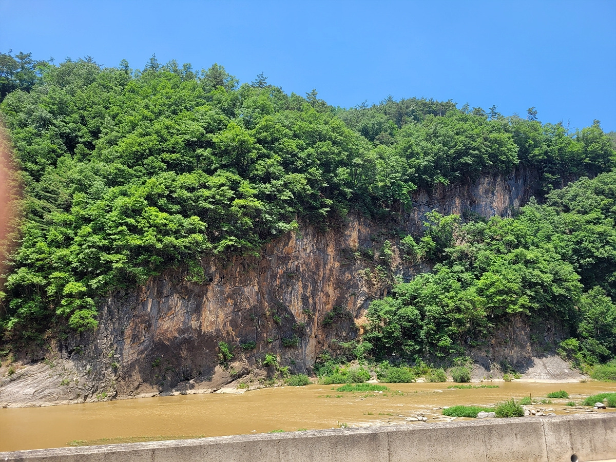 점심 때라 해가 높이 떠서 생각보다 그늘이 얼마 없지만 생각만큼 덥지는 않다. 누런 흙탕물을 보며 달린다.