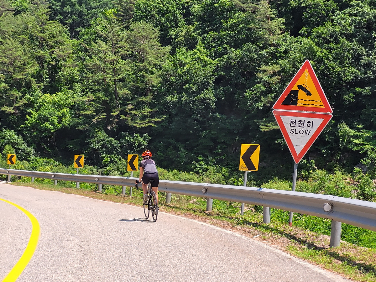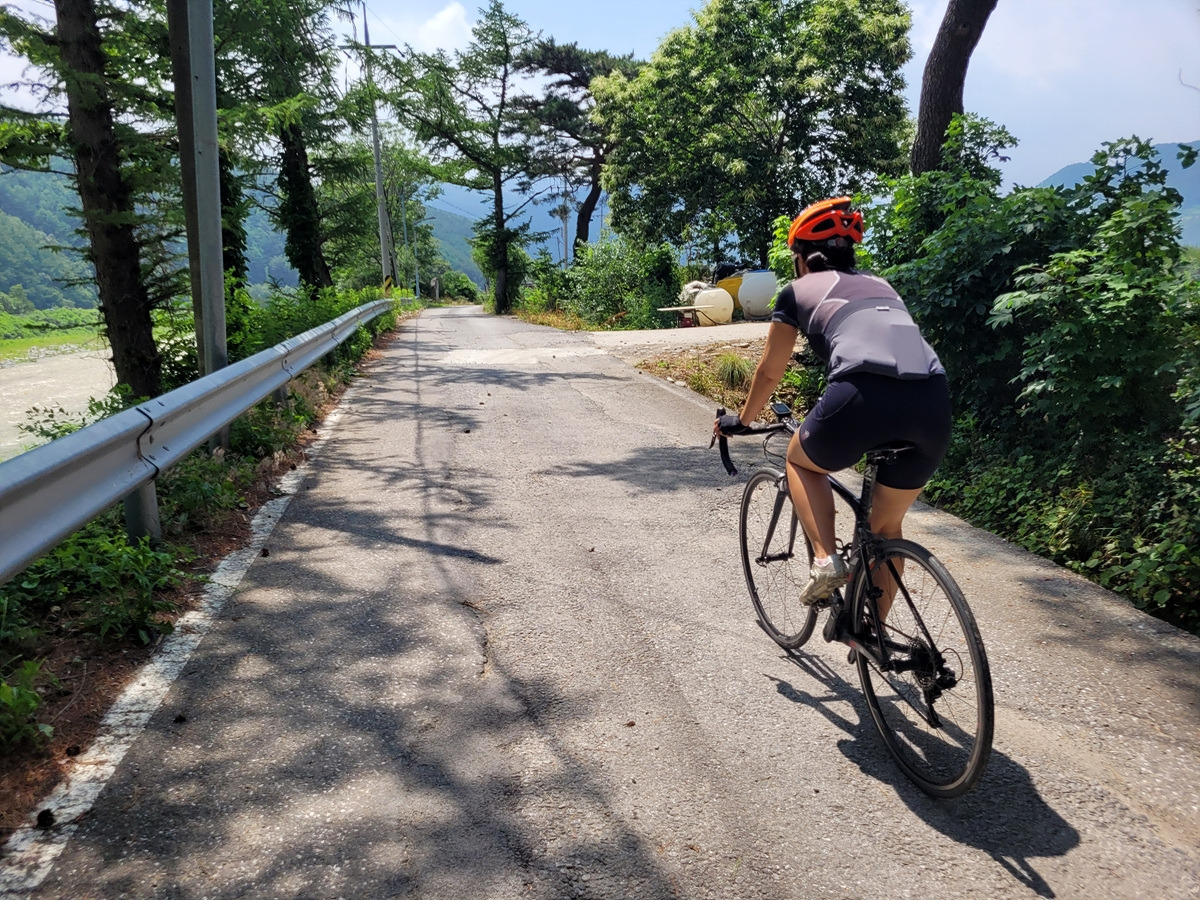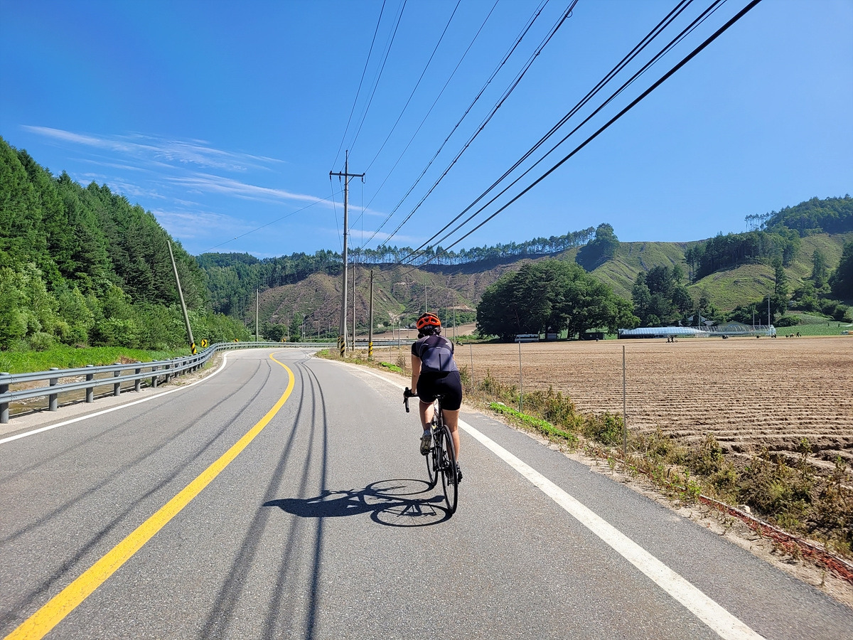 차량 통행이 극도로 적은 길이라 기분 좋게 달릴 수 있지만 그래도 분명히 차 다니는 길이니 조심해야 한다.
