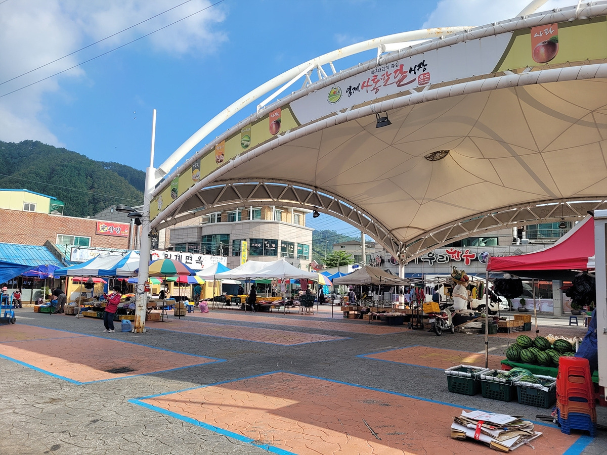 그래도 아침은 먹어야 하니 시장에 있는 식당에서 백반을 먹었다. 딱히 추천할 만큼 맛있지는 않았다. 임계는 강릉과 태백을 연결하는 35번 국도와 동해와 정선을 연결하는 42번 국도의 교차점이니 시장 이름도 사통팔달시장이다. 강릉으로 갈 때는 삽당령, 동해로 갈 때는 백복령을 통과하니 오르막길을 좋아하는 자전거인이라면 한 번쯤은 들르게 되는 곳이다. 횡계에서 피덕령이 있는 안반데기에 들렀다가 내려오면서 들르기도 한다.