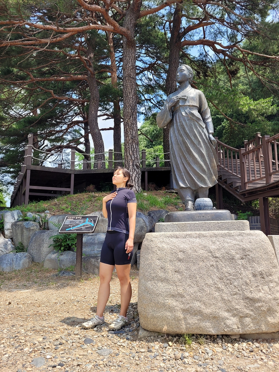 골지천과 송천이 만나는 곳에 총각을 만나고 싶은 처녀상이 있다.