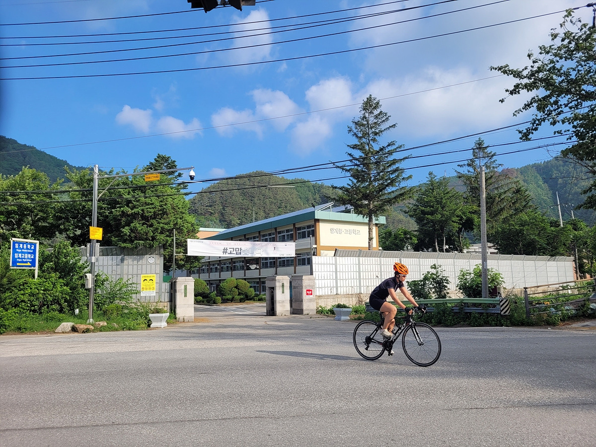 아우라지에서 출발해도 되지만 우리는 임계에서 출발하기로 한다. 임계 마을 안쪽은 오늘 장날이다. 주말에 자전거 탈 때는 보통 면사무소 주차장을 애용하지만 오늘은 마을 입구인 임계고등학교 앞 공터에 주차하고 출발한다.