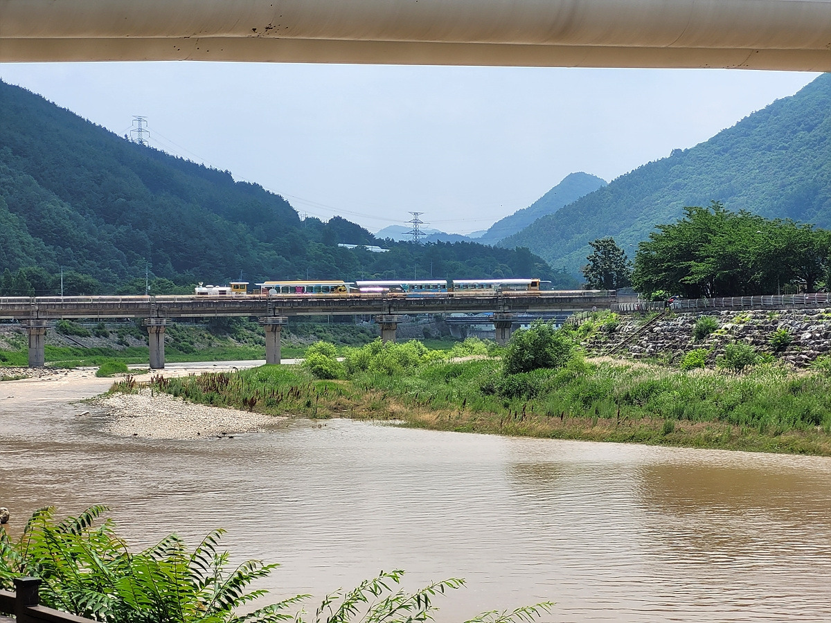 관광객들을 구절리로 실어 나르는 열차도 마침 지나간다. 종종 오는 곳이지만 올 때마다 아우라지는 한강 전체 구간에서도 손꼽을 만큼 멋진 곳이라 느낀다.