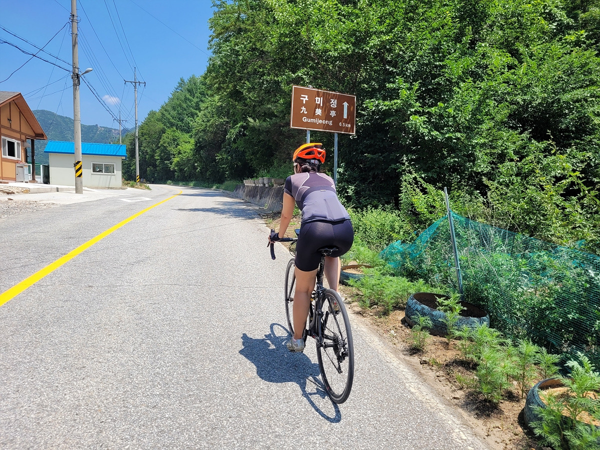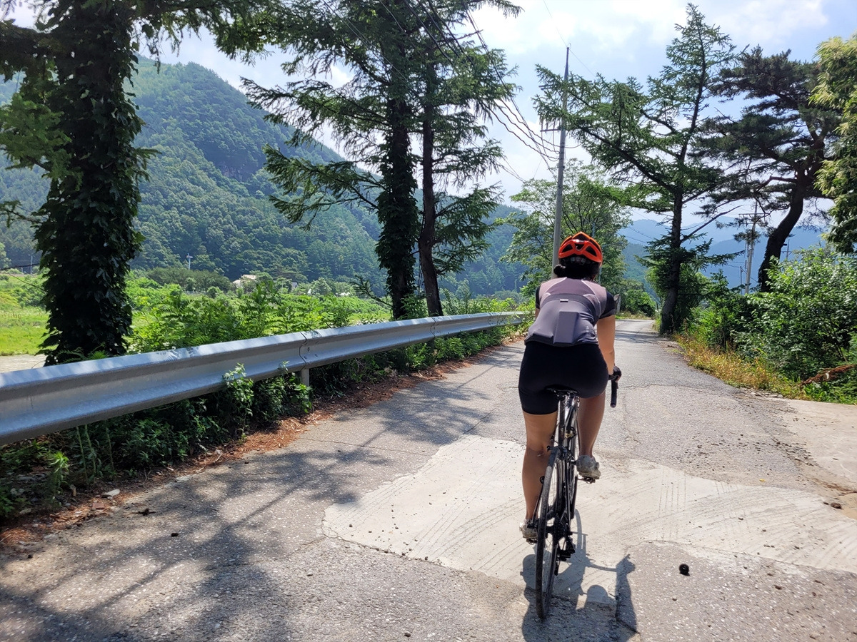 고단리에서 대기리로 넘어가는 길이 오늘 최대의 오르막길이다. 그래 봐야 아까 버들고개 아래에서부터 해발 250m 정도 상승한 것이다. 로드 자전거로 올라가기에 힘들 정도는 아닌 경사도이다.